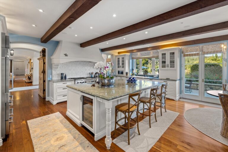 The seller of 880 Picacho Lane ($36.5 million), at the northern end of the prestigious street, paid $20 million for the 3.5-acre property in April 2021. You know those Paris homes you see in design magazines, where someone has taken a gorgeous old building and given it a spare-but-luxe interior? I think that’s what this one is going for, with its mix of rustic (e.g., all those beams, the barn doors) and polished (e.g., herringbone floors, a dumbwaiter). But this doesn’t have the patina of a 19th-century Haussmann-style structure; built in 2014, it smacks of newness. And there are some interesting choices, such as “temperature-controlled wine room with glass ceiling visible from main level den” (why?) and a windowless “bunk room” that Charlie Munger would’ve admired.