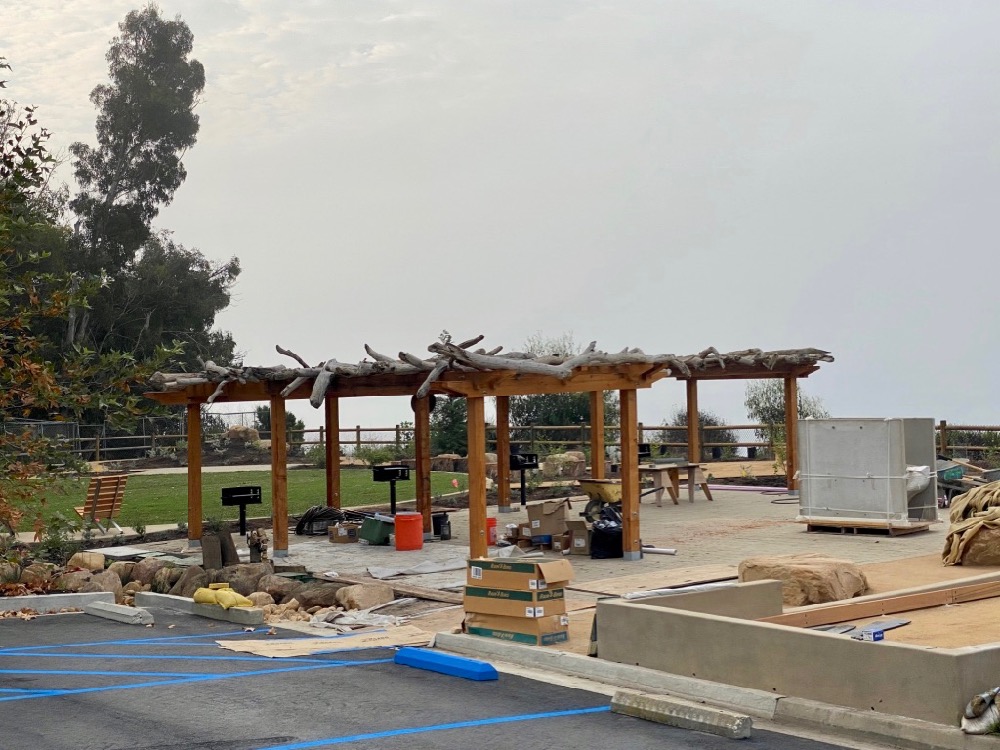 Van Wie explained the scope of the project: “The renovations include removal of existing auxiliary park sheds, concrete drainage swale and sections of existing asphalt; repaving of the parking lot; installation of decomposed granite trails, natural stone benches, planting and irrigation systems, grassy and permeable paving picnic areas with BBQs, trellises and recreational site amenities such as concrete ping-pong tables and a bocce court. Additional site improvements include relocation of the EV charging station and upgrading the concrete site drainage swale to natural rock percolation to more naturally deter erosion and reduce hardscape.” And there’s a large parking space near the picnic area that can handle a food truck, for booked events and possibly daily use.