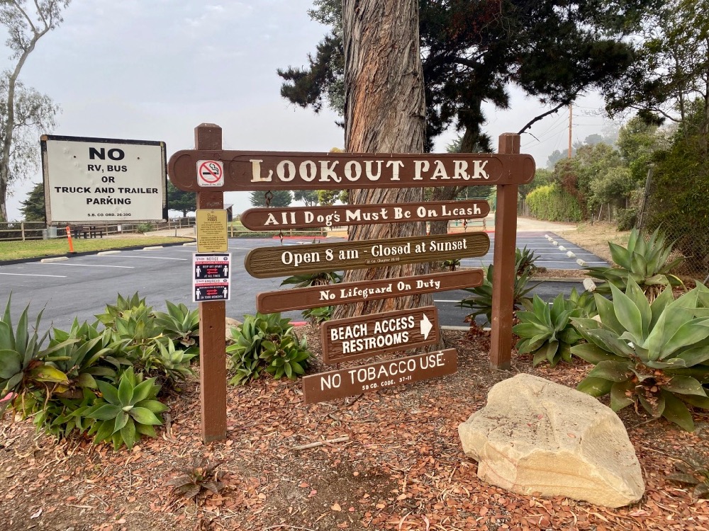 First, some background via the park’s website and Jill Van Wie, capital division manager of the county’s Parks Department. Lookout Park came about in the late 19th century, when H. L. Williams donated nearly two acres of beachfront property, once the site of an oil-processing facility, to Santa Barbara County. In 1976, the county purchased an additional 1.5 acres. When Lookout Park was first developed, there was a ranger’s residence and maintenance facilities at the east end. In 2013, the residence was removed, and planning began to install public amenities in its place. Those plans were finally completed in 2018.