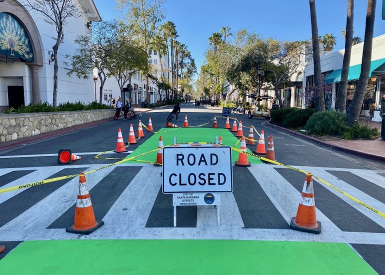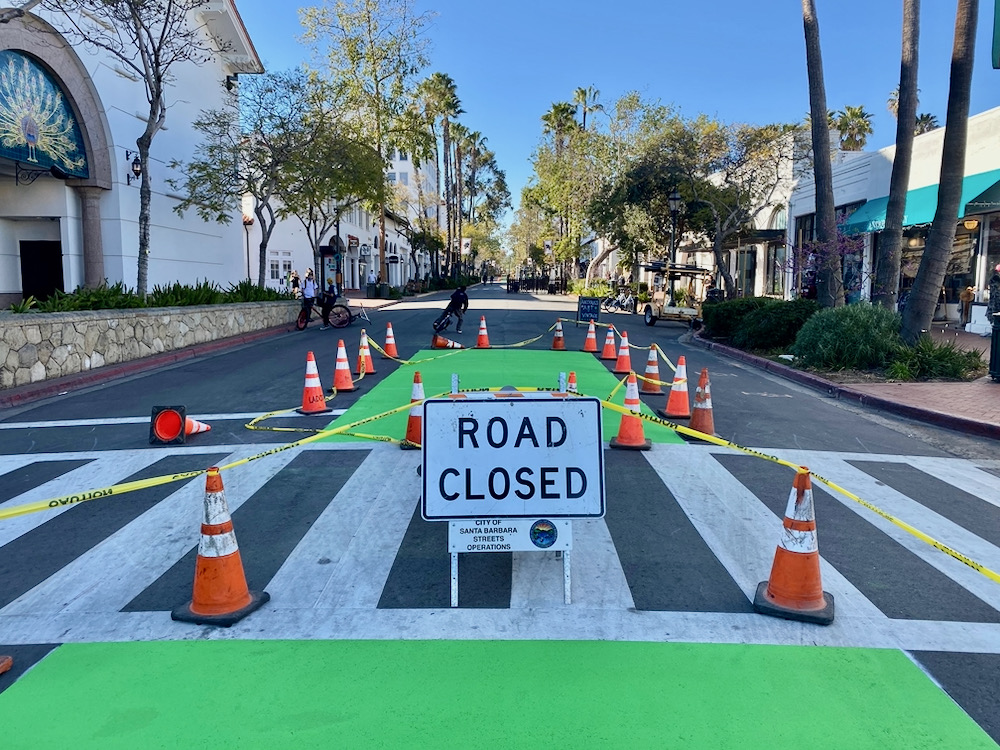 ••• The city has started painting lurid green bike lanes on the State Street Promenade, but John Palminteri says the they’ll only be at the intersections, for some reason. There had to be a more elegant solution….