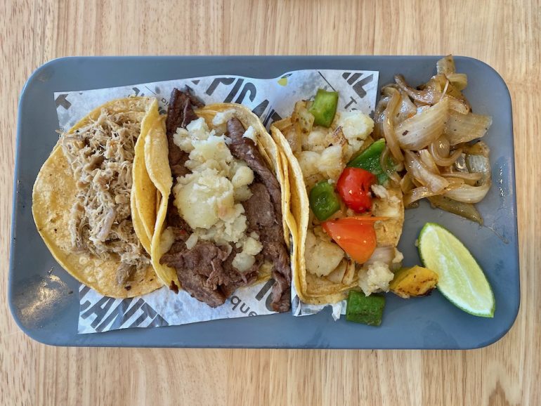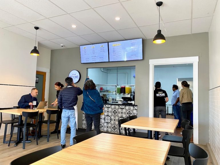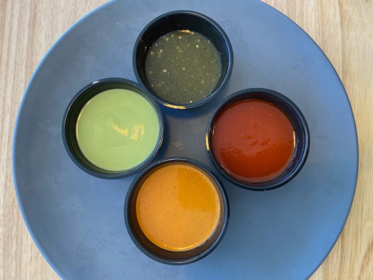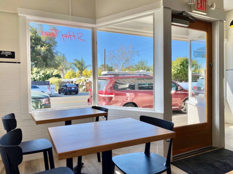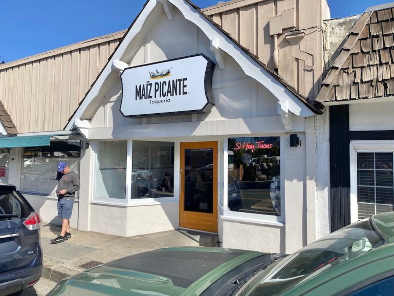••• Maíz Picante, on De La Vina just below Handlebar, has opened. The owners are David Back and Monika Draggoo, who are apparently also owners of Santo Mezcal. The taqueria’s interior is no-frills, but the staff is extremely nice (and maybe too helpful—they hardly need to come out from behind the counter to explain to every customer that the menu is up on the wall). My favorite tacos were the carnitas and the birria (not shown), and the quartet of salsas was a nice touch. I also quite enjoyed an aqua fresca that was described as pineapple-ginger but tasted mainly of cucumber. And the Avolutions straw was the first biodegradable straw I’ve ever had that didn’t get soggy. (UPDATE 2/16: The restaurant posted its menu on the website so I switched out my crummy photos of it.)