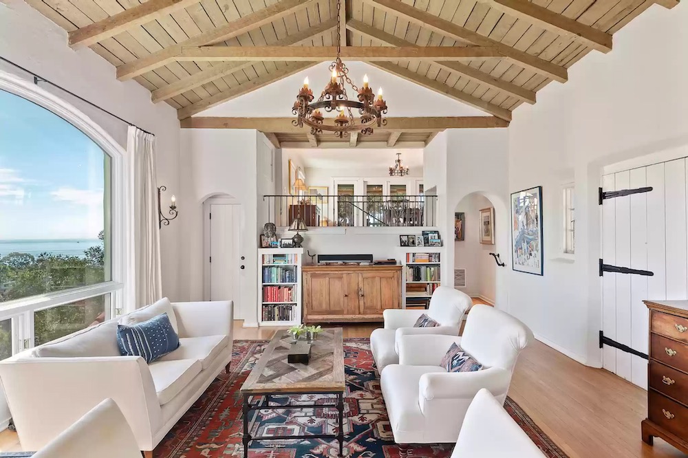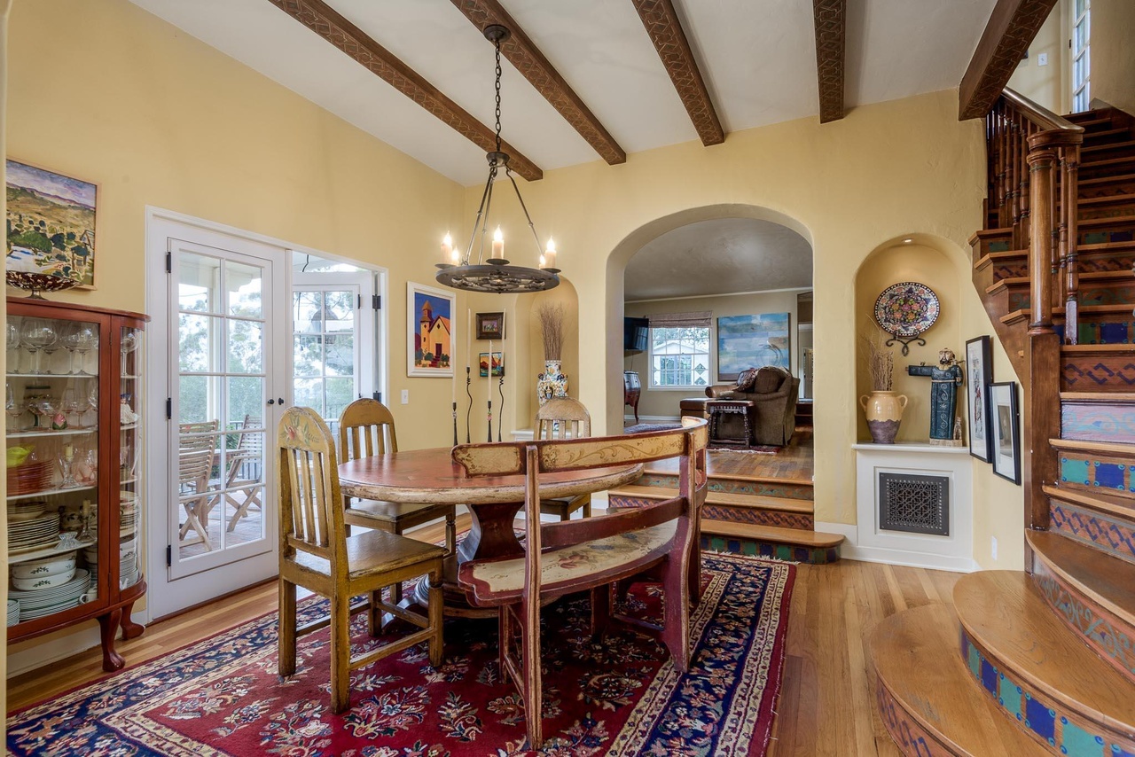 The inside of 1181 Las Alturas Road ($4.59 million), built in 1924 and with lots of old-house character, is ready for updating, but dang, what a setting! I wish the motor court and the outdoor area could be switched, so the view didn’t include parked cars.