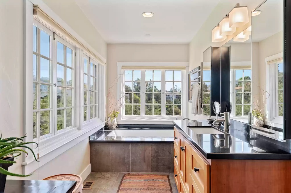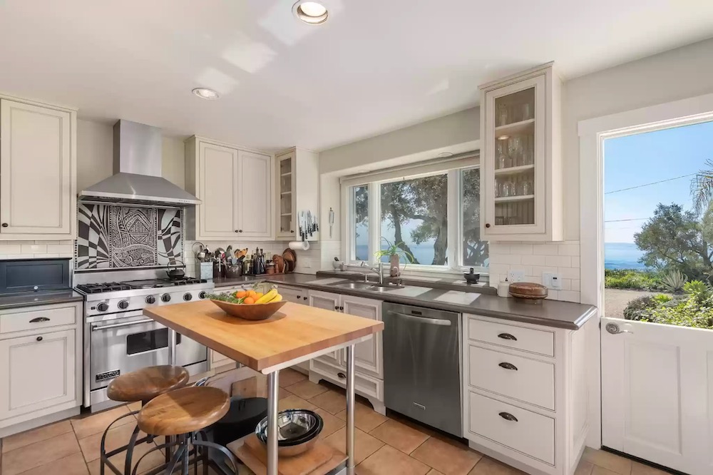 479 El Cielito Road ($3.995 million) was built in 1956 but the floor plan feels right for today, including four bedrooms that are all en suite. (They all want updating, although I found some of the tilework refreshing.) And the lawn extending out toward the view is just lovely.