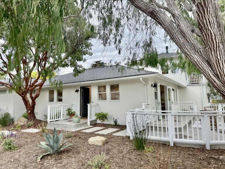 A pair of houses—one two-bedroom and one three-bedroom—that look like manufactured housing on 4.25 acres in outer Carpinteria.