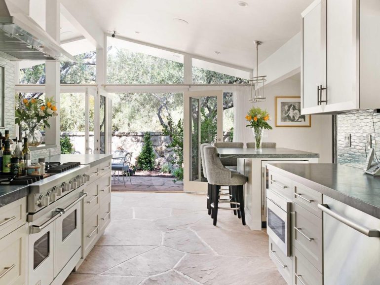 The sellers of 325 San Ysidro Road ($7.595 million) paid $4.66 million in October 2021 and redid everything, and aside from some overzealous bathroom choices, it’s a textbook example of how to make an unremarkable house appealing. I do wish that the front and back yard had more in common, but the herringbone brick terrace makes up for a lot.