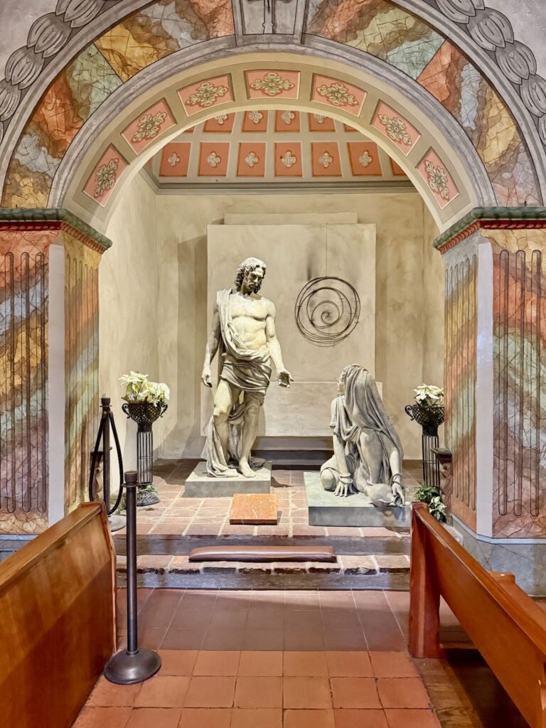 Two nooks near the narthex—I just learned that word and am delighted to use it—feature sculptures of Jesus and Mary Magdalene on one side…