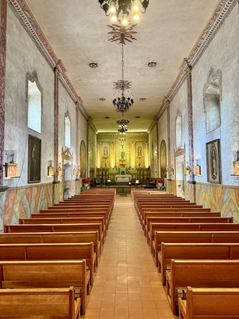 The church, which has grown over the decades, is beautiful—and a vivid contrast to the less ornate one at the Presidio.