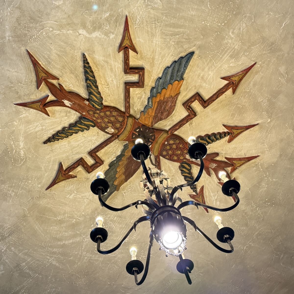 The dramatic molding on the ceiling looks more Native American than Franciscan.