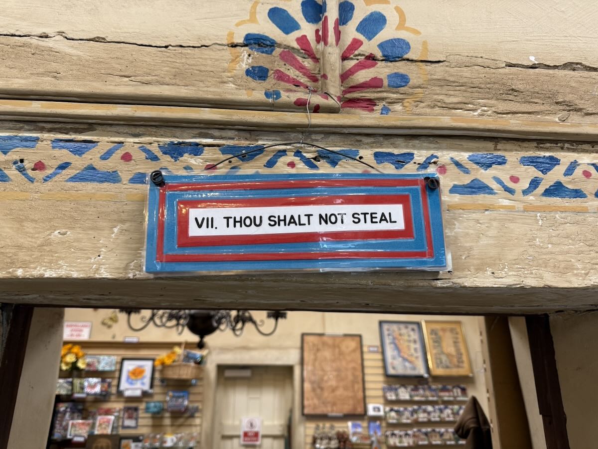 And above a doorway in the gift shop is a cute reminder to behave. Who needs a security camera when you have the seventh commandment?