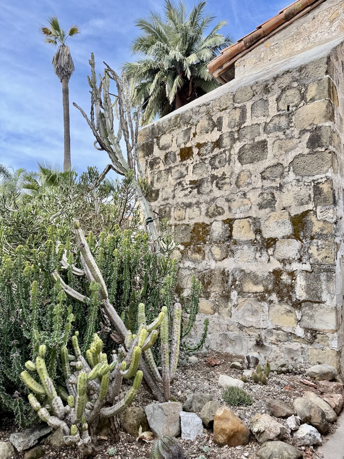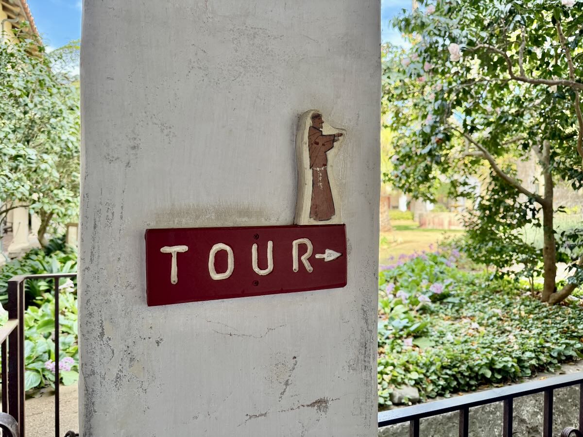 I loved the little figure of a friar pointing the way. Seeing an actual friar in person is not out of the question: “Old Mission Santa Barbara is the only mission of the 21 in California that has been continuously occupied by Franciscan friars.” As for the “Siau Benvingut” tile, I figured it was some Latin phrase relevant to Catholicism, but it actually means “welcome” in Catalan.