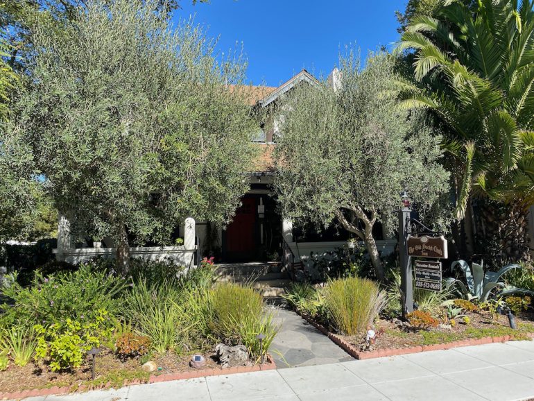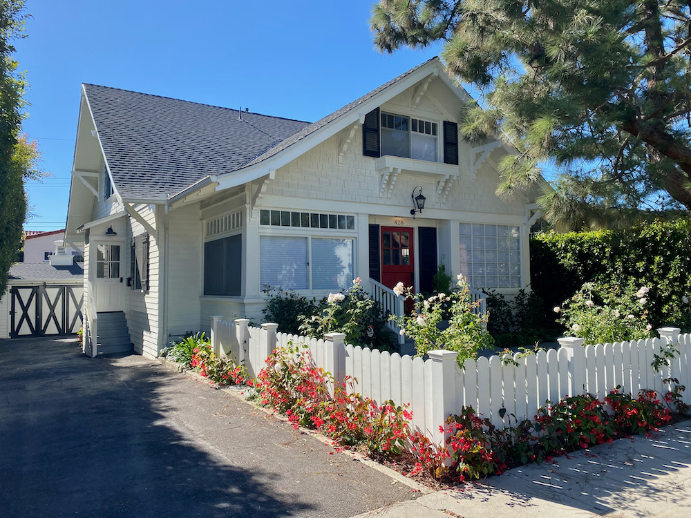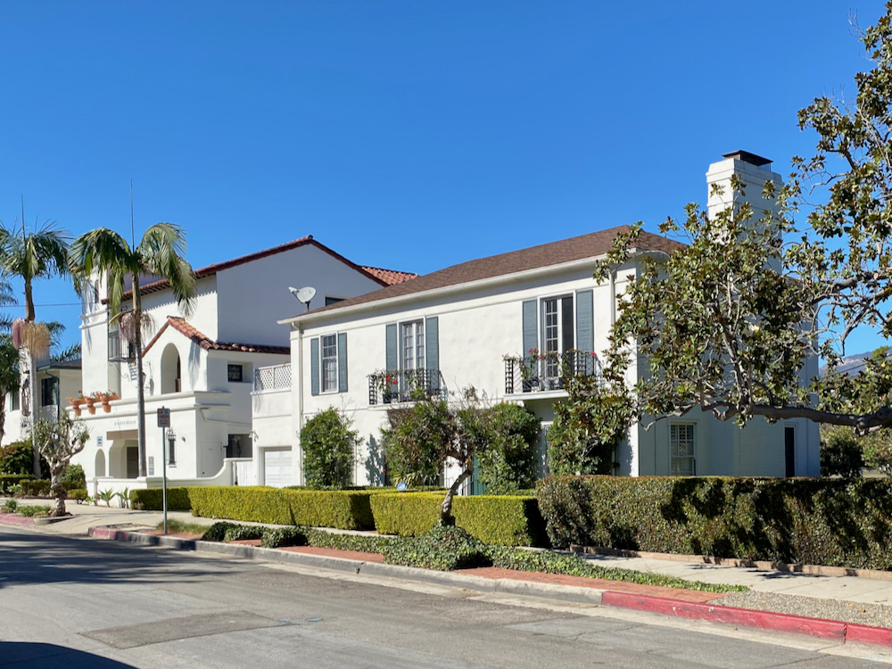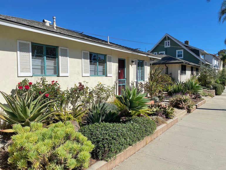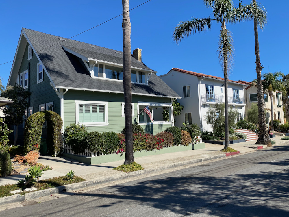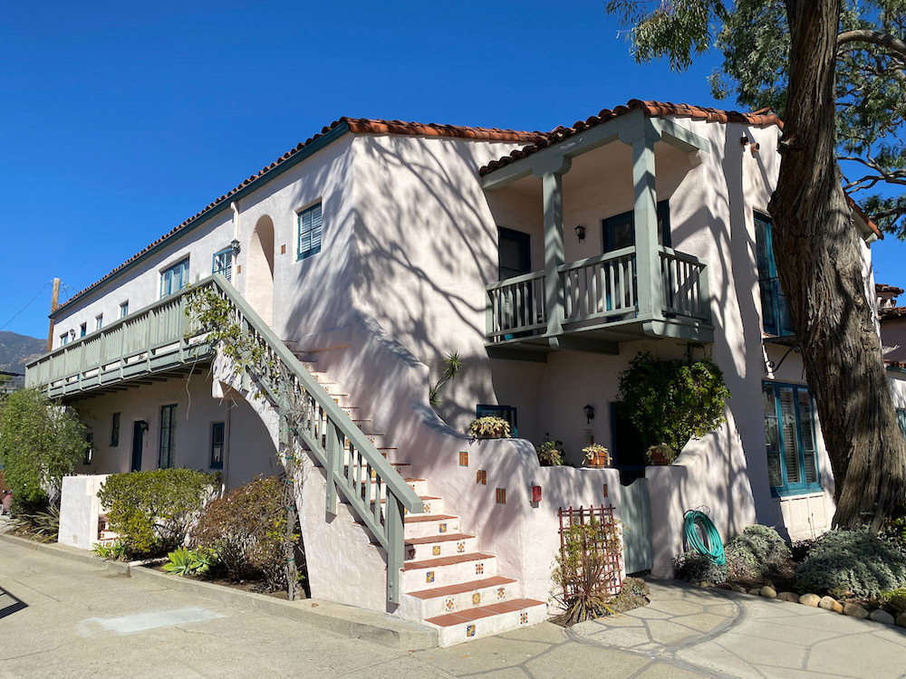 Pictured below is the Old Yacht Club Inn. (“The original house is a California Mission Craftsman built in 1905 and was used as an interim clubhouse for the Santa Barbara Yacht Club in the roaring 1920s after the original was destroyed in a storm.”) The second photo is the 1935 Hitchcock House, which became part of the Old Yacht Club Inn in the 1980s. Now they’re both vacation rentals.