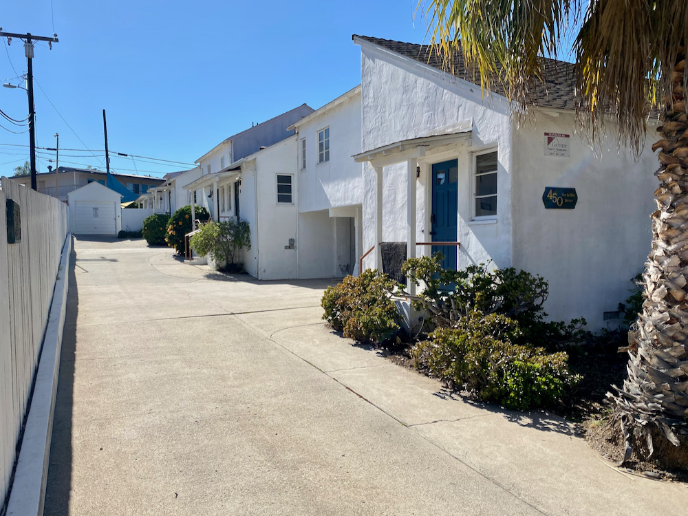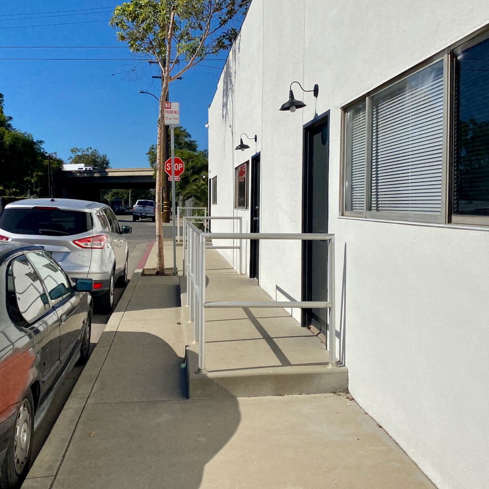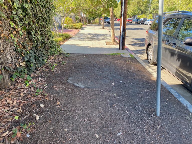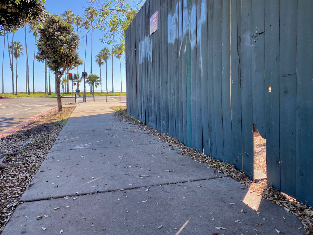 The area west of S. Milpas turns edgier, particularly around the PATH homeless shelter on Cacique. And I’m always amazed when I come across a stretch of dirt sidewalk in Santa Barbara. This isn’t to say there aren’t spiffy buildings, such as the one housing Challenge Asphalt and Savy, a marketing agency. (Talk about strange bedfellows.)