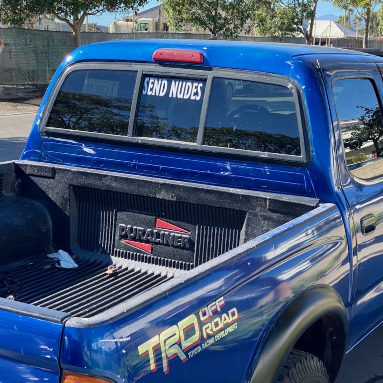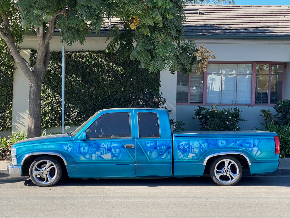 Different truck; different kind of blue. I was tempted to leave a few selfies tucked under the windshield wiper.