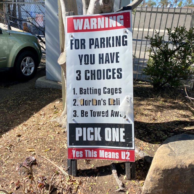 Have you ever looked at a palm tree stump up close? I was reminded of the xylem and phloem of a carrot. (Amazing what one remembers from high school….) Also of note on S. Milpas: the fabulous “Look” sign that makes me want to bug my eyes out, à la Marty Feldman, and the sign singling out U2.