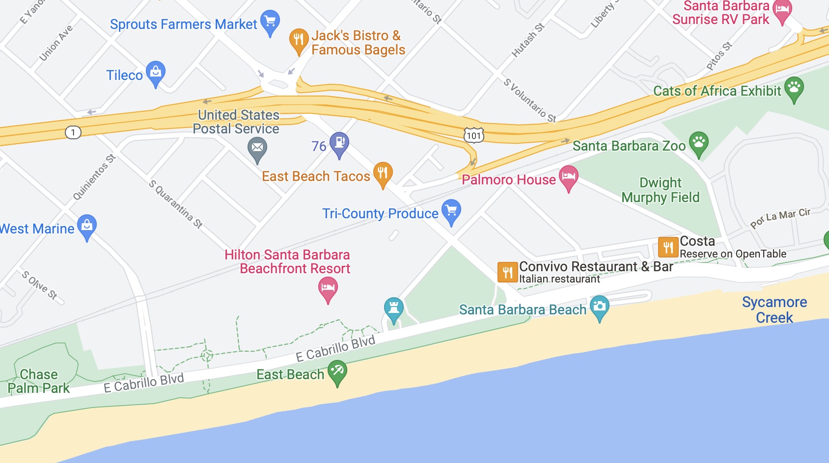 The East Beach neighborhood has two totally different personalities: the east side is primarily residential and hotels, while the west side tends toward the commercial and industrial—and is far funkier than the Funk Zone.