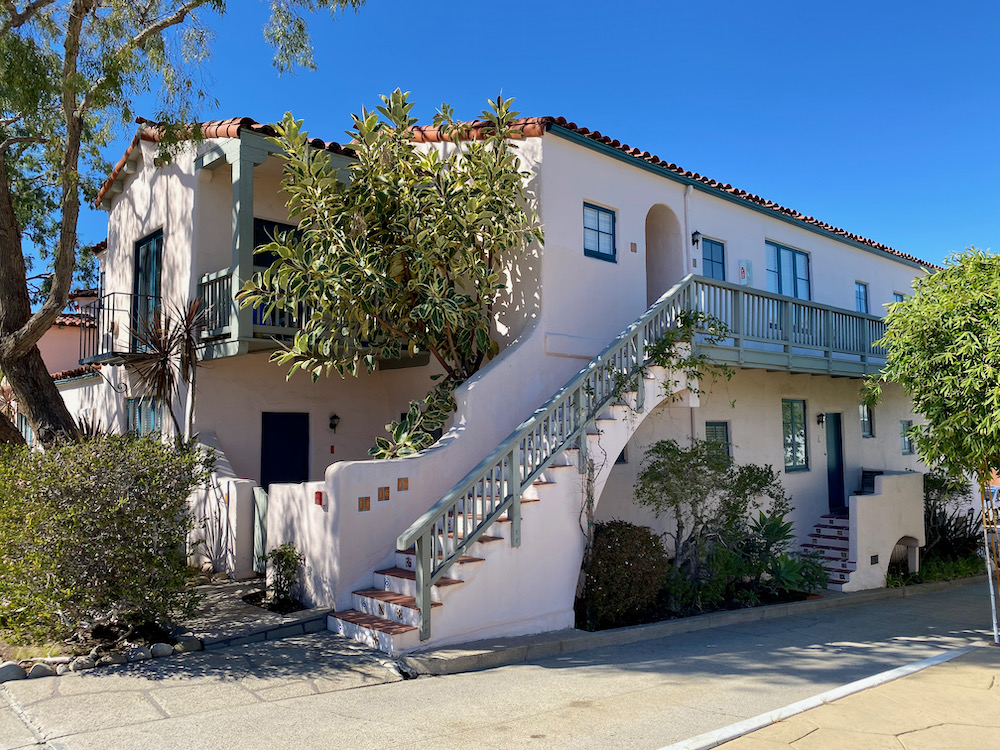 I parked near the south end of Dwight Murphy Field and headed north, toward the zoo. It was hard not to wish that the back of what is now the Mar Monte Hotel had been designed with as much care as the front. Any building that visible from a distance should present better. Anyway, not until this walk did I realize that two nearby buildings—Palmoro House and Santa Rosa—are also part of the hotel.