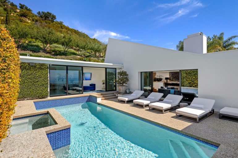 The 1974 Jack Warner house at 1514 E. Mountain Drive ($12.75 million) has killer views and a sexy little pool off to the side. The rooms with sloped ceilings feel better than the flat ones, where a midcentury makeover could do wonders.