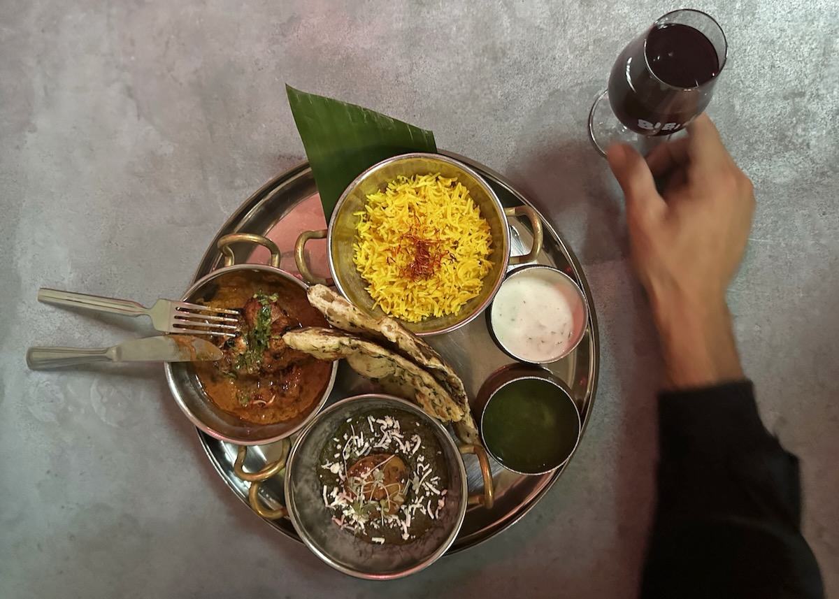 ••• Bibi Ji has brought back omakase-style thali platters (above) on Mondays—for $39, you get a starter, kebab, and curry, with naan, rice, raita, and chutney (no splitting or substitutions).