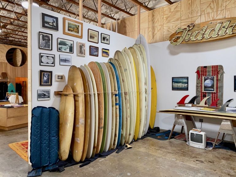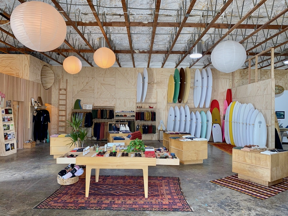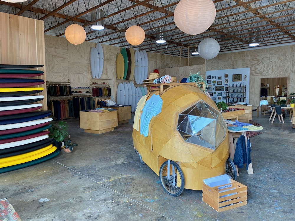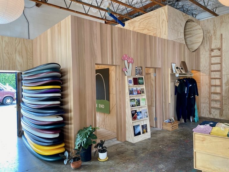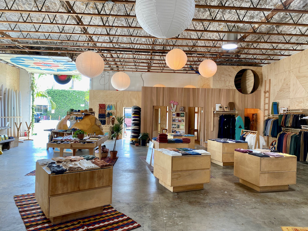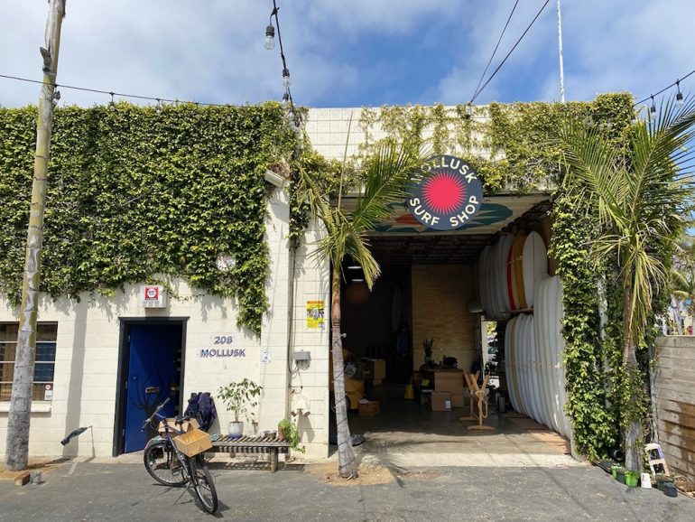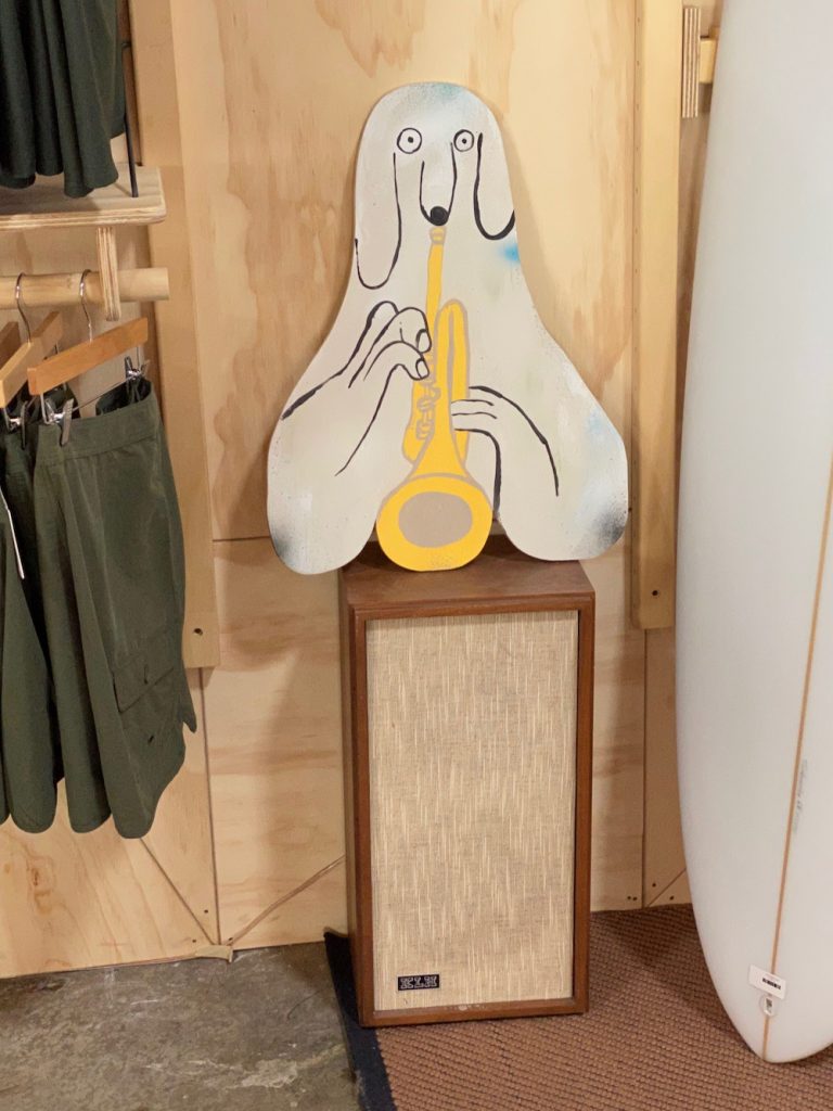 ••• I incorrectly assumed that Mollusk Surf Shop was leaving its Funk Zone space for one a block away; instead, the surf shop renewed its initial lease and added a new one next door. (Doubly wrong!) The old store is now being used for storage, and the new one is fantastic. I meant to ask if the dog musician is for sale….