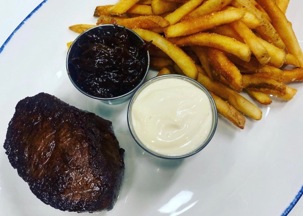 ••• Jonny McDermott, chef at Local—the restaurant and bar opening soon on Coast Village Road—has been posting photos from “menu tasting and demo week.” Above: steak frites with red onion marmalade and aioli, from the all-day menu.