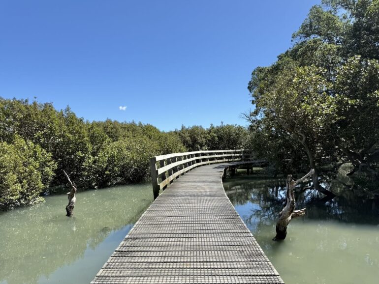 In residential areas, we kept coming upon little paths that led to hidden parks—and in one case, to a boardwalk through mangroves. (You’re never far from the water in Auckland.) Encountering another human was rare, to say the least, and cicadas were trilling like crazy.
