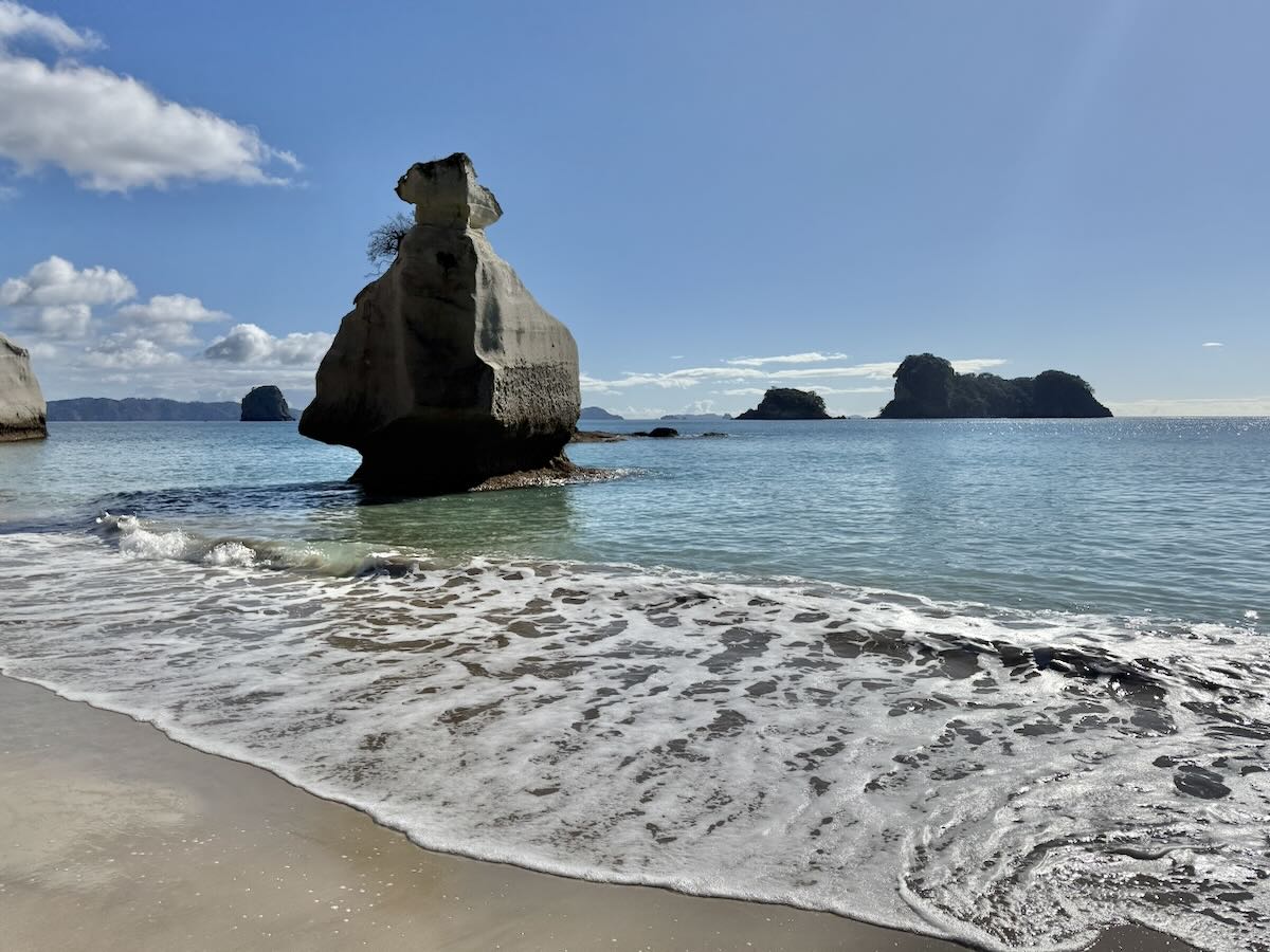 The water is clear and turquoise—so beautiful that, after swimming for a while, I headed back to shore to get my phone for a photo. While shaking the water off my hands, I inadvertently flung my platinum wedding ring somewhere into the surf. Don’t say I never gave you anything, New Zealand.