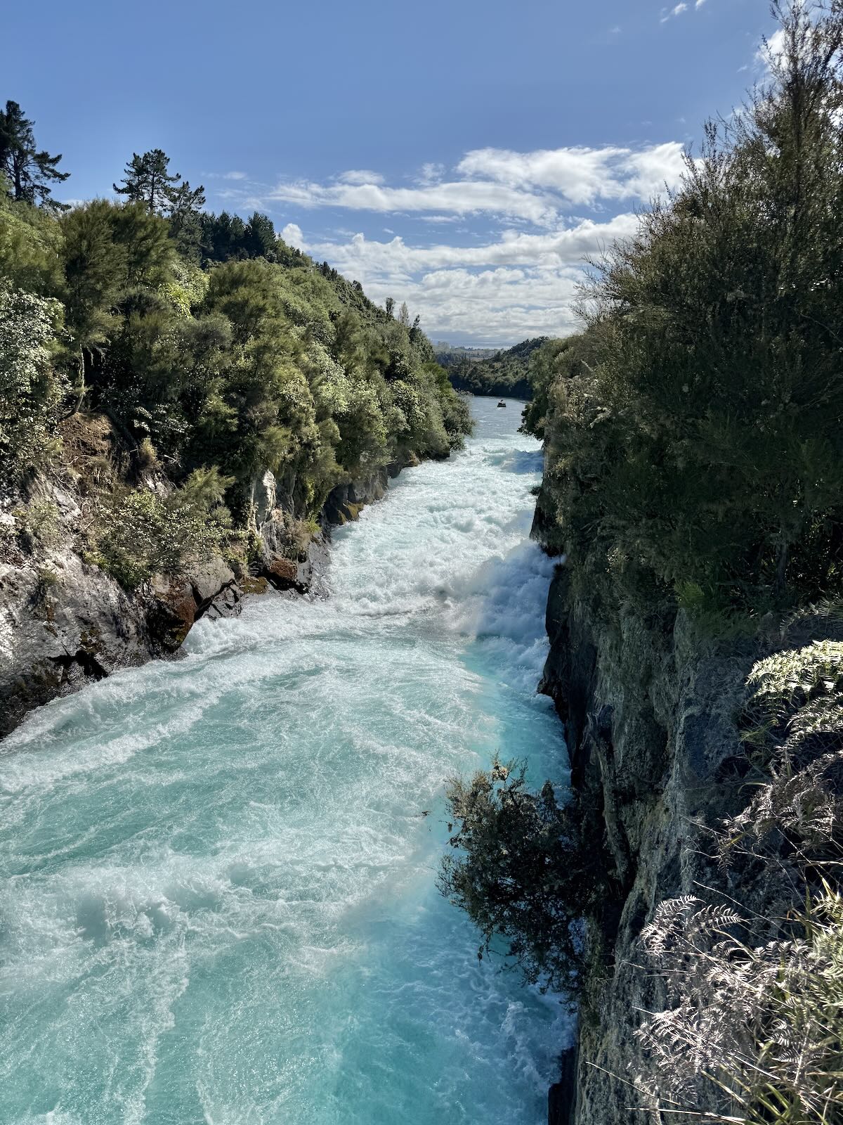 Taupo is better than Rotorua, but not by much. If you go to New Zealand, you’ll get asked a lot whether you’ll be bungee-jumping. I’m no fan of heights, and I’m old enough to worry that I’d hurt something (extra unappealing in the middle of a trip with lots of hiking), so we opted for the swing instead. You’re in a seated position, and drop rather than dive, then arc out over the water. It was fun! And I love that the photos and video are included in the price.