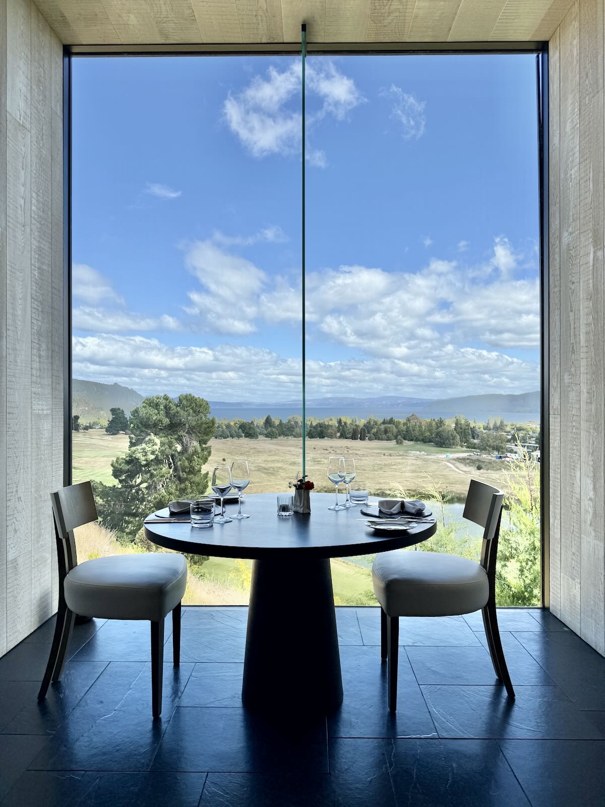 Fortunately, we didn’t have to spend much time in Taupo, for we were staying at Kinloch Manor, 20 minutes outside of town, where dinner is included. The architecture and setting are sublime, and manager Giacomo Fabozzi made us feel very welcome. My only criticism is that, for the rather high room rate, breakfast (and especially the coffee) should be better. The second morning, we went to the coffee cart by the lake instead.