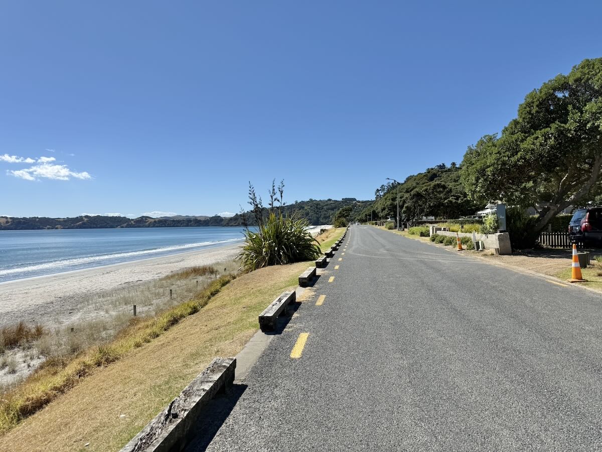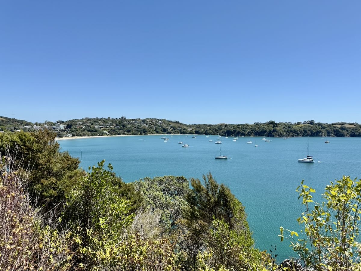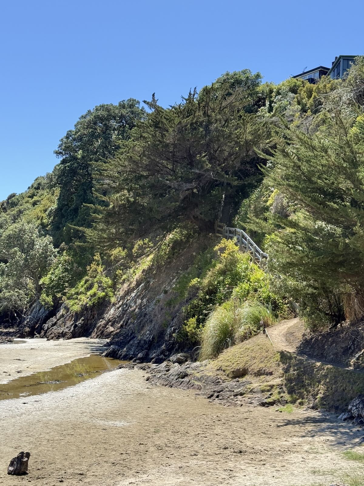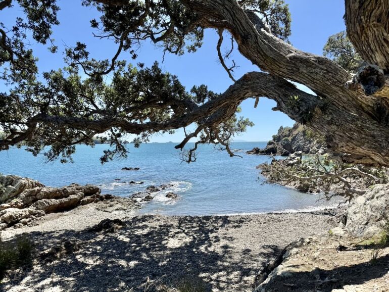 And just as in Auckland, we were delighted by secret paths. While eating lunch from a pizza truck at Oneroa Beach, we noticed a trail heading up the bluff. It leads to an exquisite little cove.
