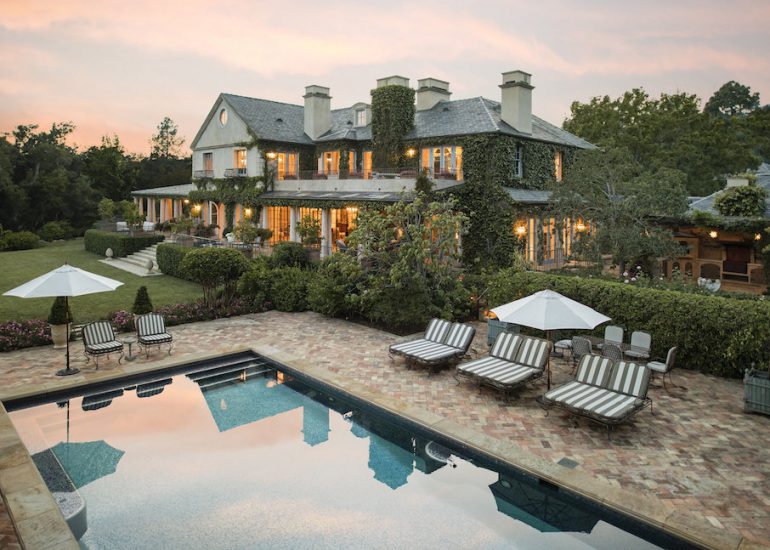 Four bedrooms on an acre in Montecito. Prime brokerbabble: “The private Cabana with game-room and fireplace, and napping-room be graced by a broad veranda for enjoying the picture-perfect black-bottom pool, surrounded by lawns and landscaped gardens, completing the compound.