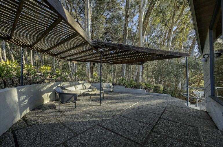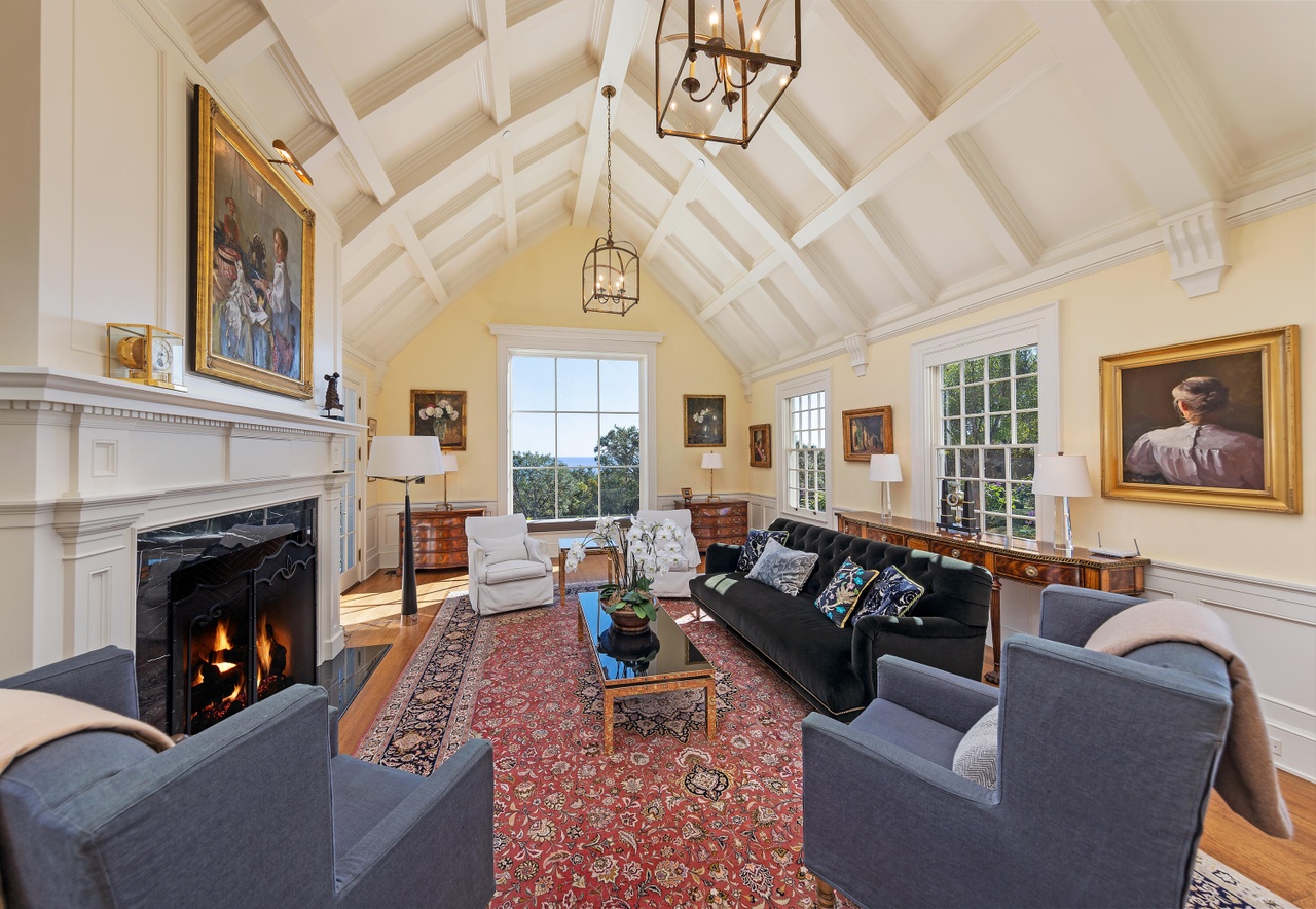 The star of 49 Cedar Lane ($2.995 million) on Eucalyptus Hill is the contemporary-style great room that opens onto a large deck, complete with outdoor kitchen and sunken fire pit. With three bedrooms and two baths, the house makes more sense for a couple than a family.