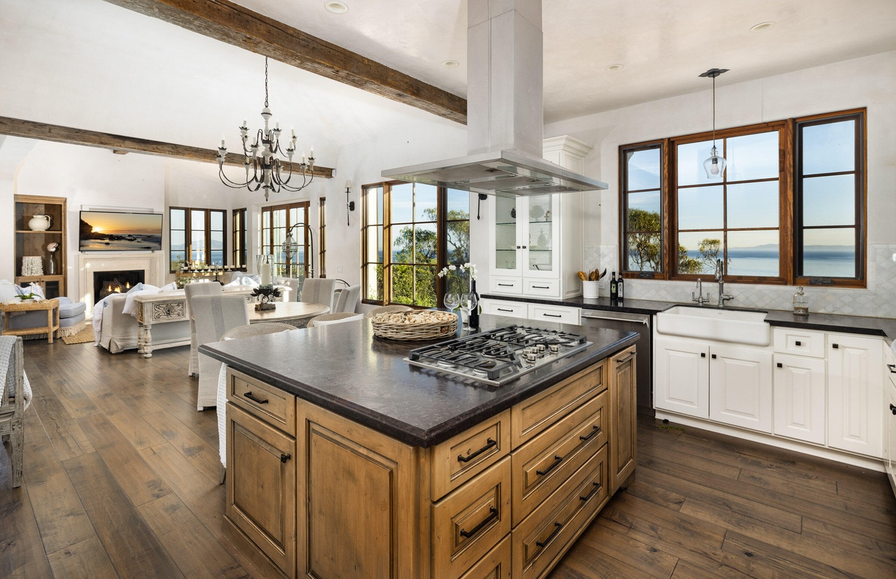 Eight figures is unheard of in the Torito Road area west of Toro Canyon, but if any property can get there, it’s likely to be 2820 Torito Road ($12.75 million), built in 2012. I haven’t seen the 7,006-square-foot house in person, so I can’t quite say whether “every element reflects a dedication of unparalleled artistry and a reverence for authenticity,” but the photos show many ways—the motor court, the ceilings, the millwork, and so on—money was spent. An interior designer who can breathe fresh air into traditional style would have a field day.