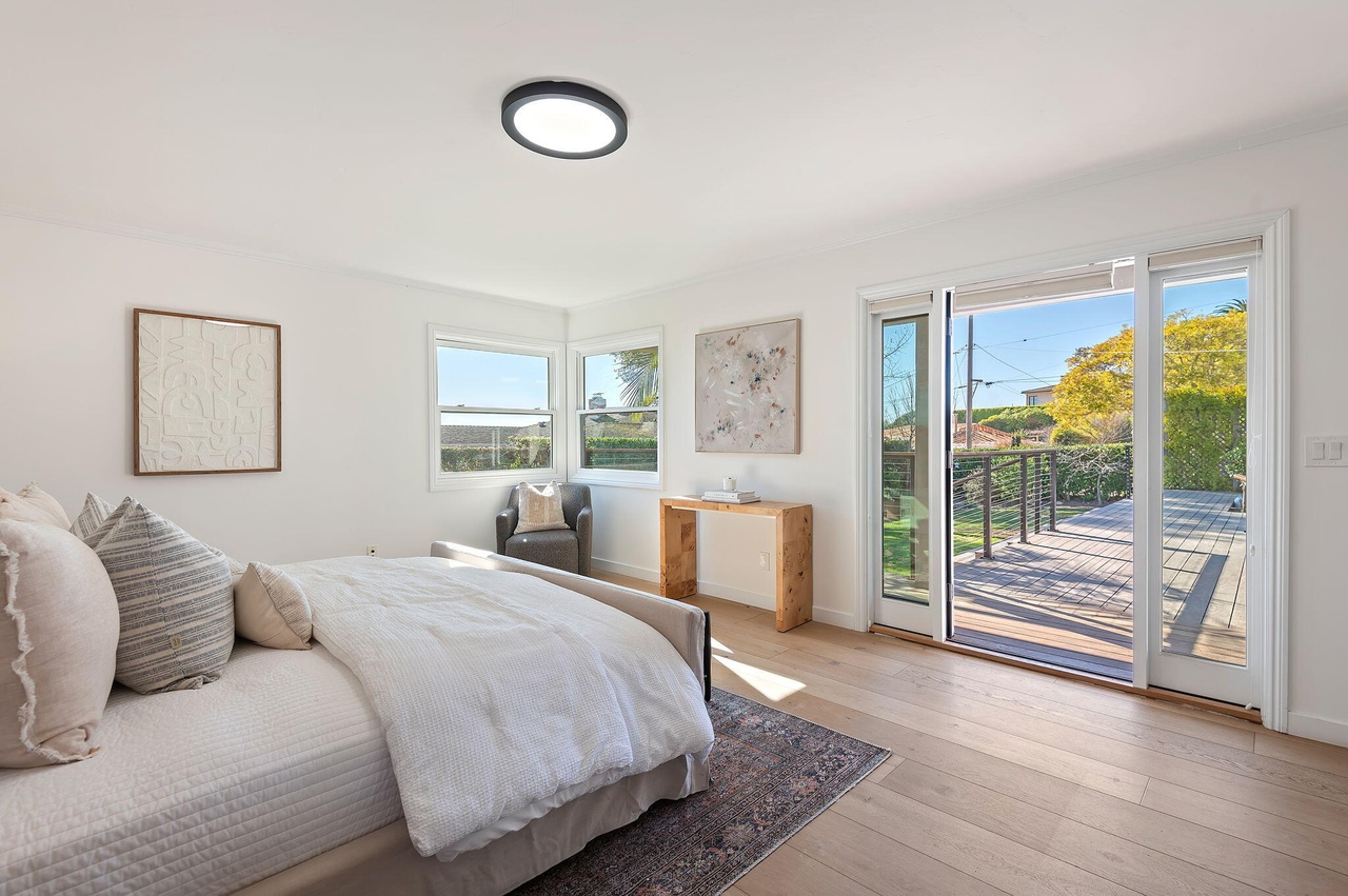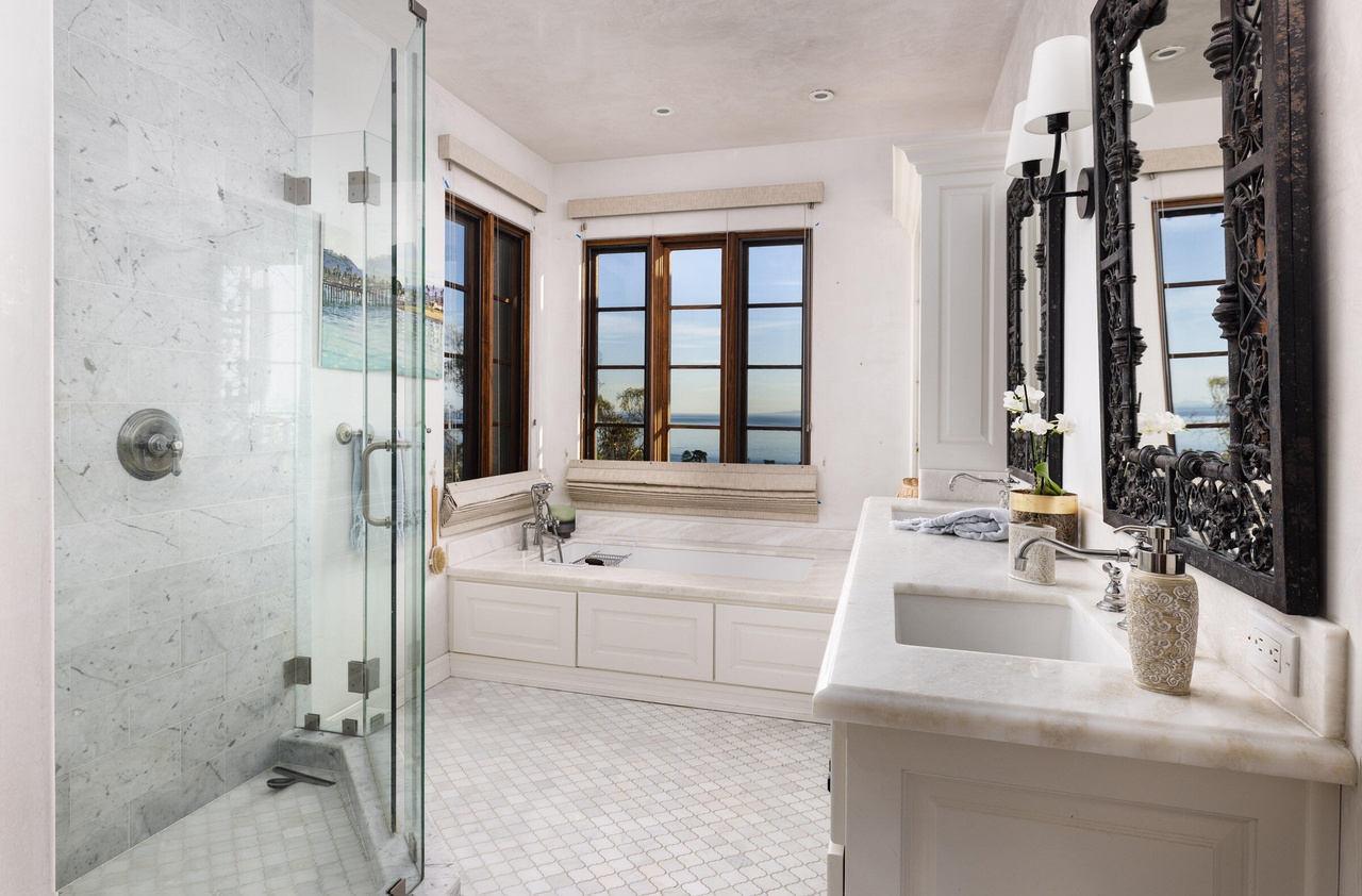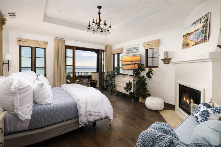 Another enviable setting can be found at 1575 La Vista del Oceano ($4.995 million), on one of Santa Barbara’s most dazzling streets. The 2015 Mediterranean drops down the hillside; common areas and the primary are below the entrance level, and two bedrooms sharing a bath are below that. You’re not going to age in place here, and there’s not much in the way of outdoor space (unless you can make use of the spit of land to the east), but views don’t get any better, and the Mesa’s commercial zone is just down the hill and to the right.