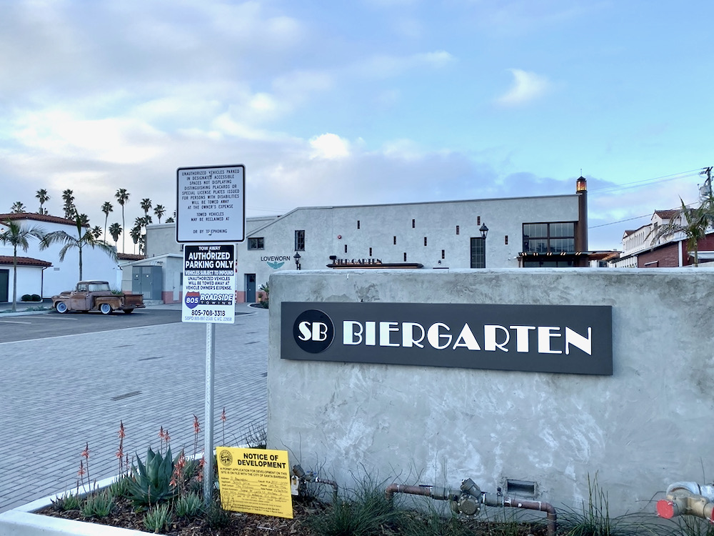 The description is the same as last time: “The project [or at least the part that’s up for discussion] involves converting 1,643 square feet of warehouse floor area to a wine-tasting business, including a new 1,962-square-foot, 45-seat, roof deck, a second-story storage area and bar. Second-story and roof access would be provided with a new exterior stair and elevator. Additional parking would be provided with a 22-space mechanical parking lift structure replacing 9 surface parking spaces for a total of 45 parking spaces.” The 15B Anacapa Street space in the northwest corner is SB Biergarten, from the folks behind Copenhagen Sausage Garden in Solvang. The wine tasting room in 20 Helena Avenue, in the northeast corner, appears to be Sunstone Winery, as the relevant plans are all labeled “Sunstone.”