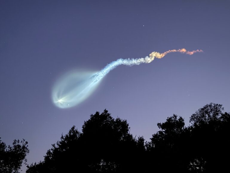 “A couple of weeks ago, we watched as the first stage of a rocket launch descended back toward Earth, and it was spectacular. I’d love to know more about what exactly I’m seeing, though. Why is it that shape? Why is the tail those colors?” The answer.