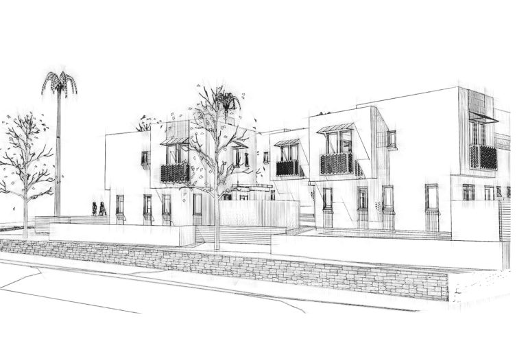••• Details about the proposed five-building complex off Old Coast Highway (above).