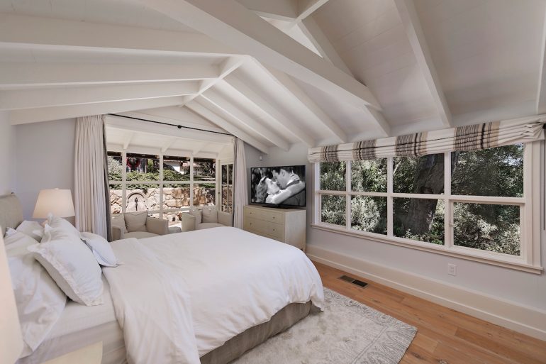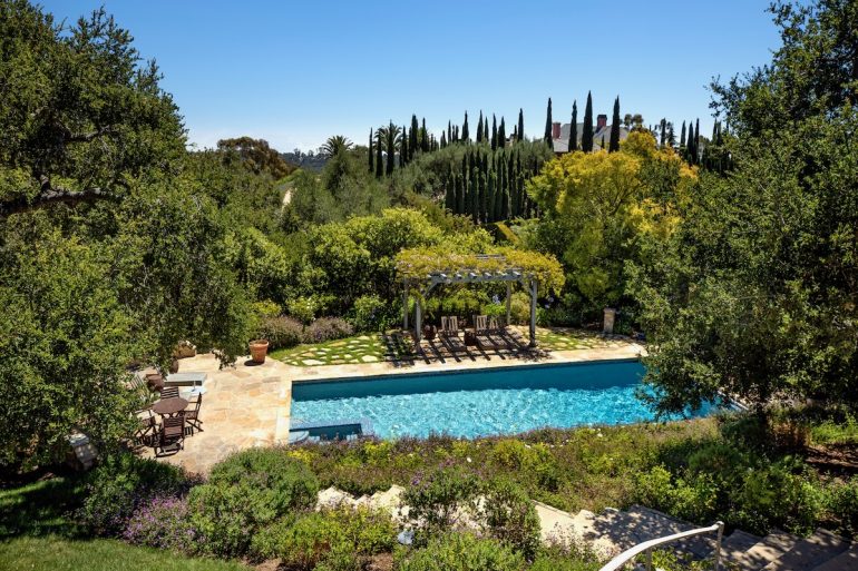 Outdoors, you can lounge by the sparkling pool, dine alfresco on the spacious patio, stroll through meandering pathways and collect delicious fruit in the extensive orchard, or relax around the outdoor fireplace with a glass of wine under the stars. And the home is located in the Montecito Union School District.