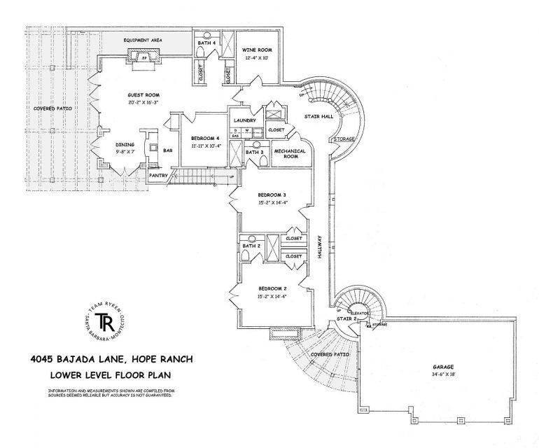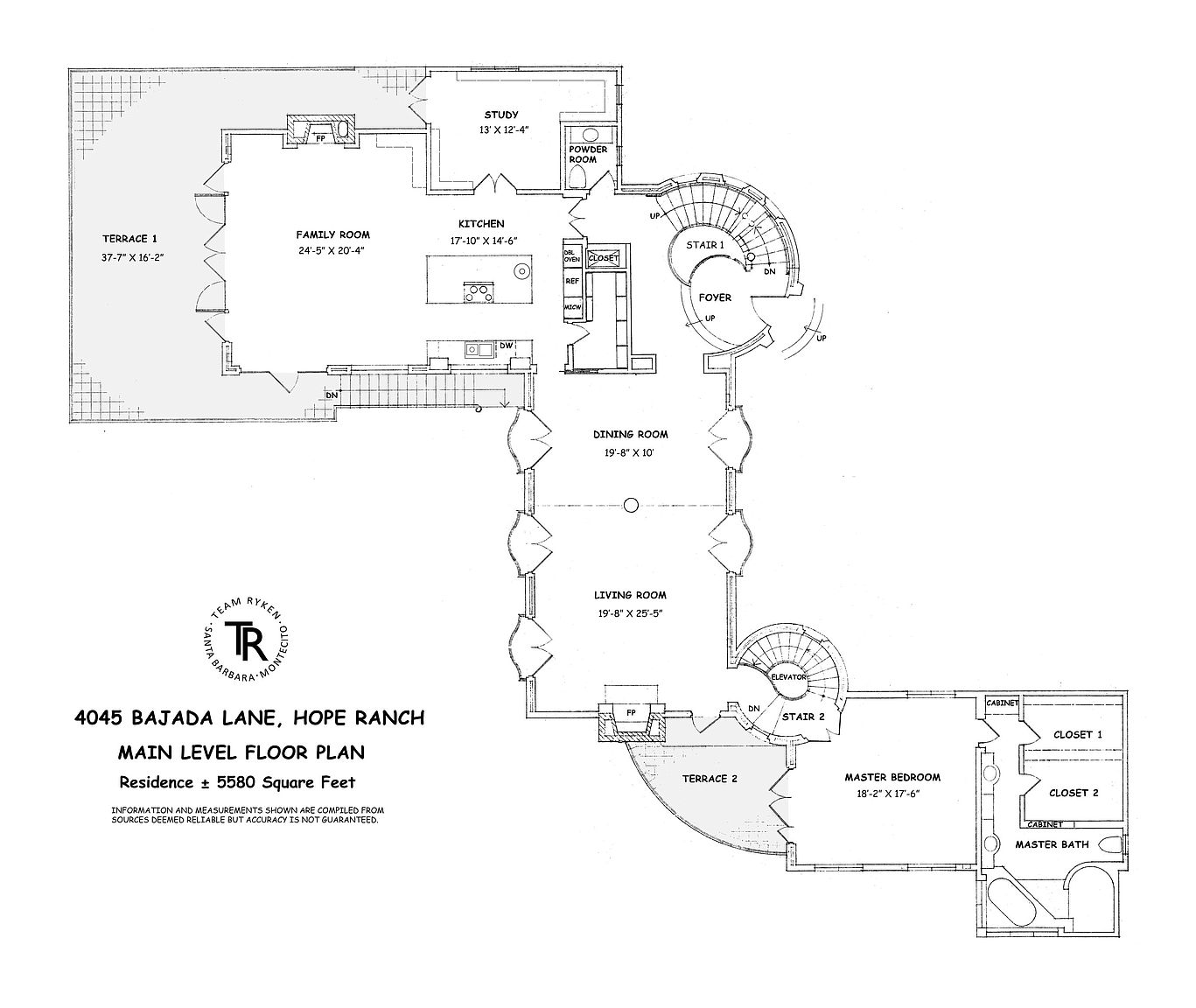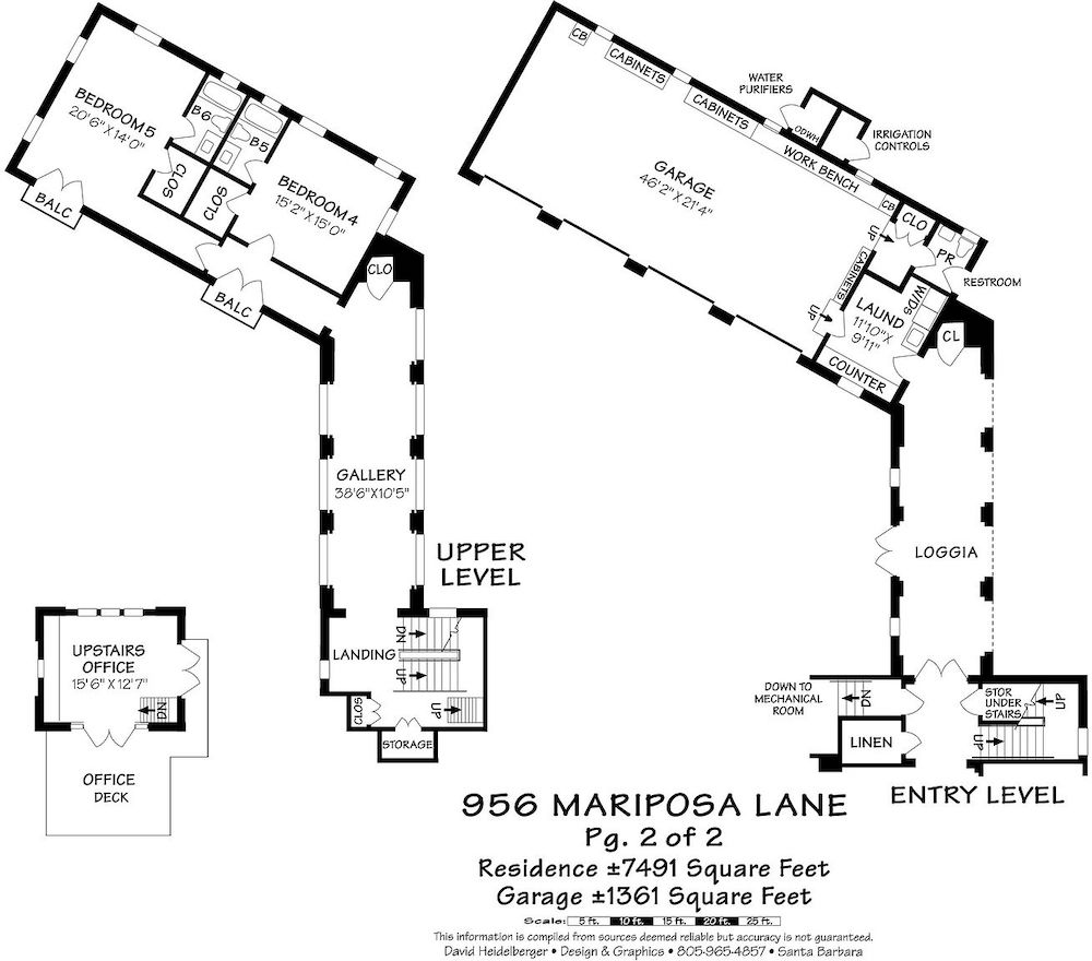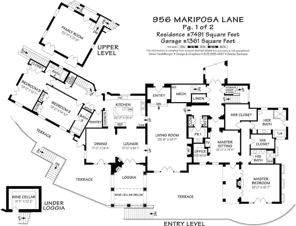 On 2.5 acres with ocean views, 956 Mariposa Lane (↓$1M to $10.45M) is now priced to move after being on the market for nearly a year. (It started out at $14.5 million.) The house only has five bedrooms, which is remarkable given the size (8,700 square feet). But as you can see from the floor plan, the master suite is substantial. And note the “secret” office above the gallery above the loggia.