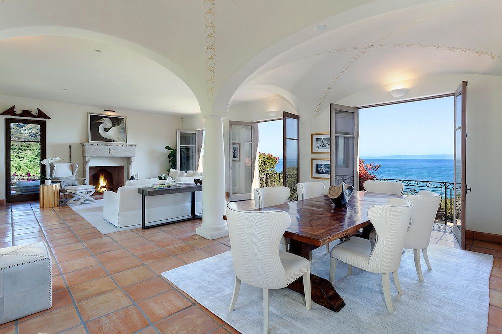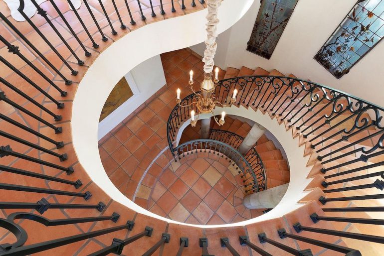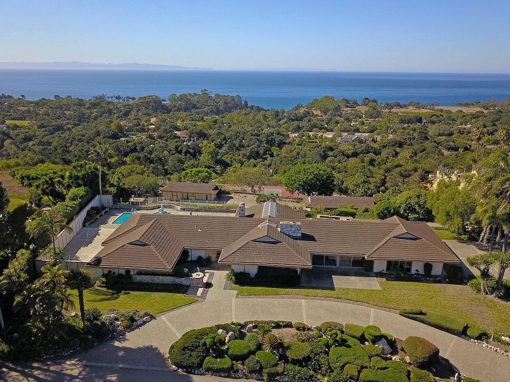 Oceanfront in Hope Ranch, 4045 Bajada Lane (↓$1.247M to $11.75M) has some very sexy details, including a corner room with killer views (pictured at top), ambitious ceilings here and there, and a swirling staircase. Speaking of descents: the property was first listed in July 2018 for $17.7 million.