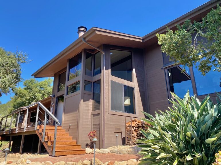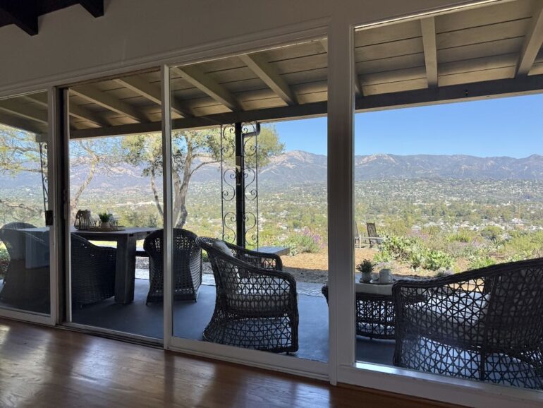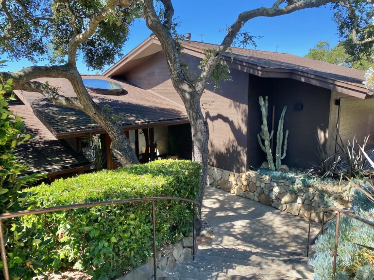 1953 three-bedroom with a wacky floor plan and a spectacular setting at the end of one of those classic Santa Barbara culs-de-sac that most people don’t know exists, with insane views of the city, mountains, and even the ocean.