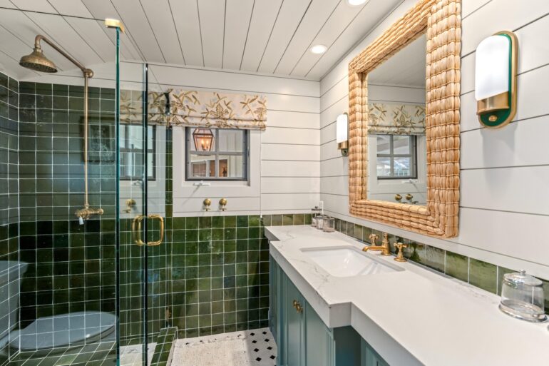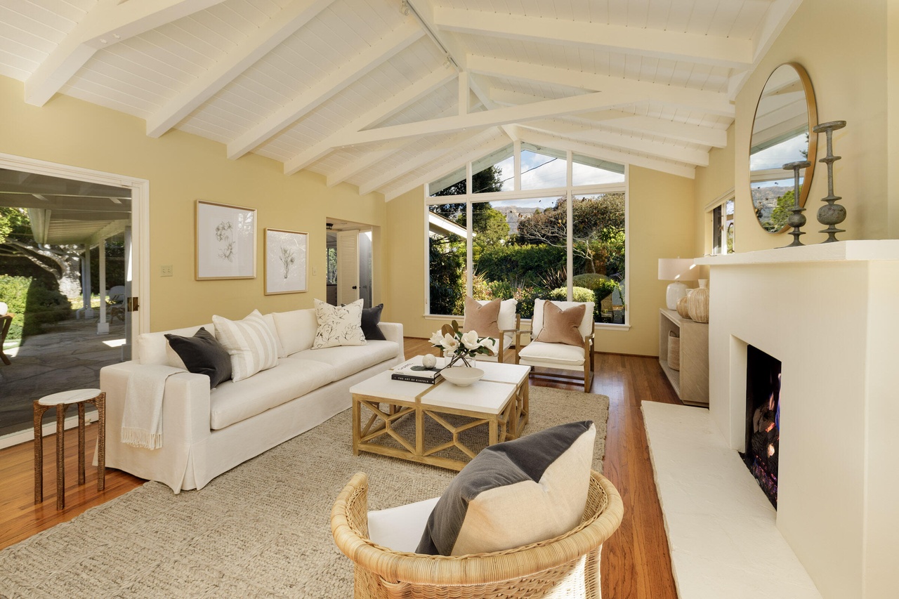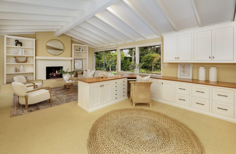 231 Middle Road, at the corner of Mesa Road, ($5.65 million) is bigger than it looks from the street, with a lot of potential. The question is whether to work with what’s there—the kitchen is tight and the primary bath is in the hall—or use the approved plans to expand the house to around 3,400 square feet.