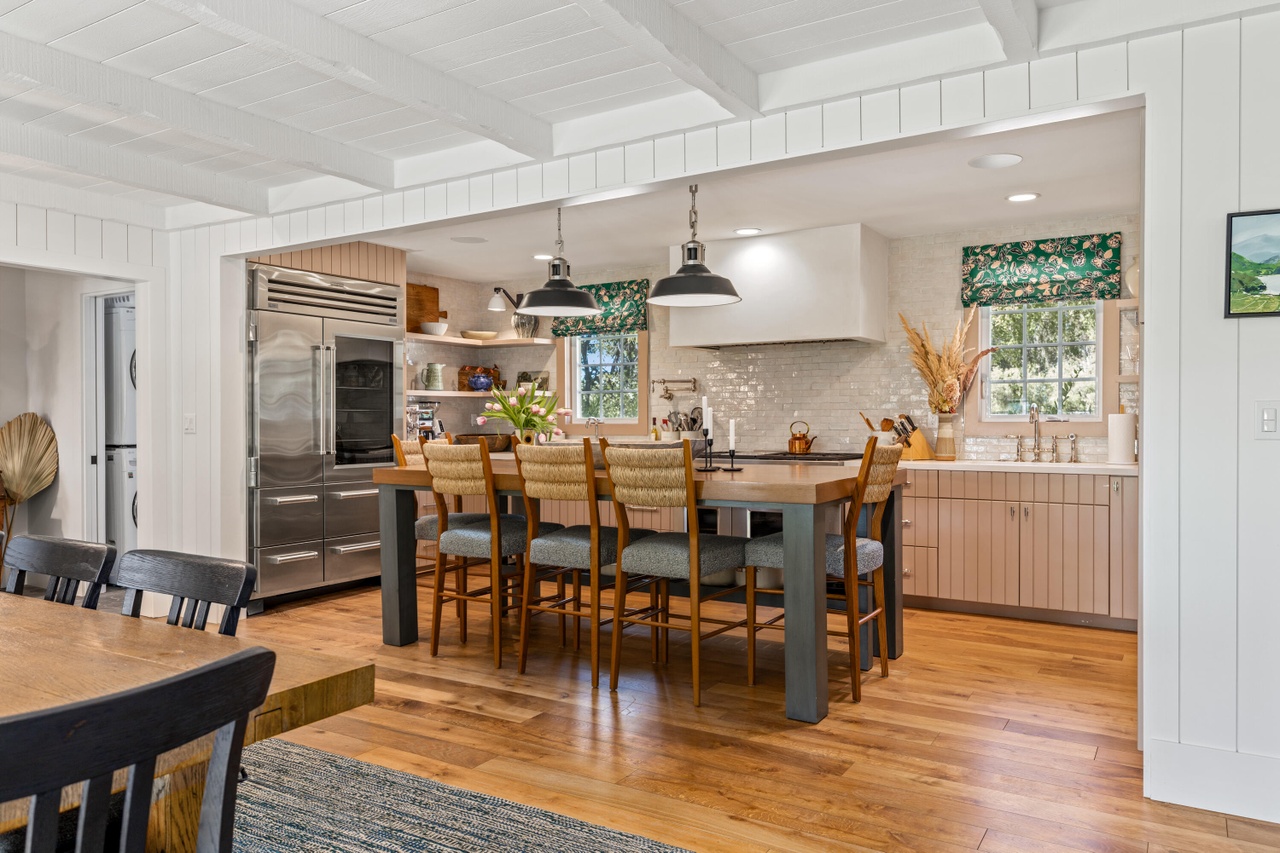 The seller of 4910 Baseline Avenue ($6.95 million), on 5.5 acres northeast of Santa Ynez, paid $3.842 million in May 2022, and I assume he/she/they are the ones to have made the 1965 four-bedroom as handsome as it is. I’m tempted to buy it and hole up for the next four years….