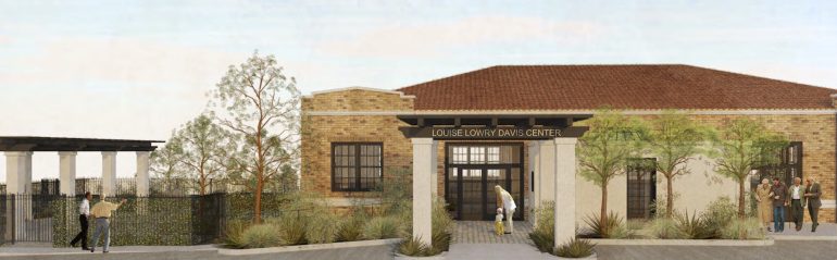 ••• The city’s Louise Lowry Davis Center event space on De La Vina (at Victoria) will be closed February 16 to June 16. According to the sign posted there, “The project will expand usable outdoor space by connecting the building to a renovated courtyard and new shade pergola. Accessibility improvements will include parking, ramps, and walkways. Landscaping and lighting will also be refurbished.” Renderings courtesy Bildstein Architecture and Planning.