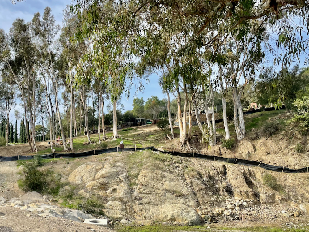 ••• Planting is underway at the botanical garden Ty Warner is building at the north end of the San Ysidro Ranch. You can sort of see it in the photo A. took from across the ravine.