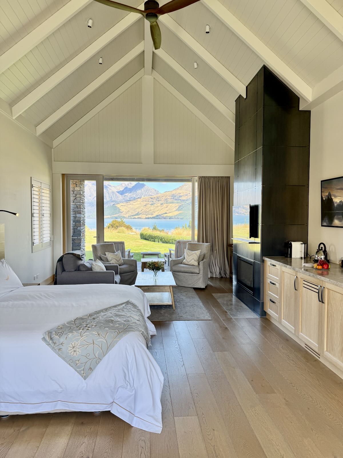 If I were exploring New Zealand, knowing what I know now, I’d cherrypick destinations and fly between them. Which leads me to a long postscript: after the Backroads tour, we spent two nights at Blanket Bay, an absolutely sublime lodge about an hour’s drive northwest of Queenstown.