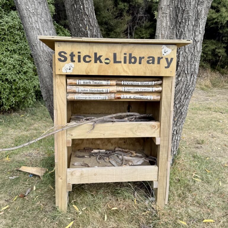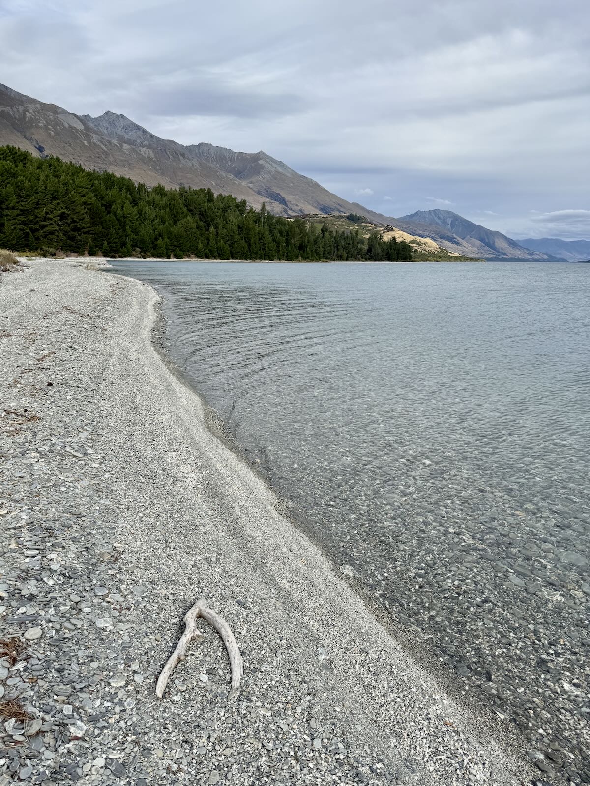 Sometimes the excursions were walks, not hikes, like the one along the shore of Lake Hawea that passes by a stick library for dogs.