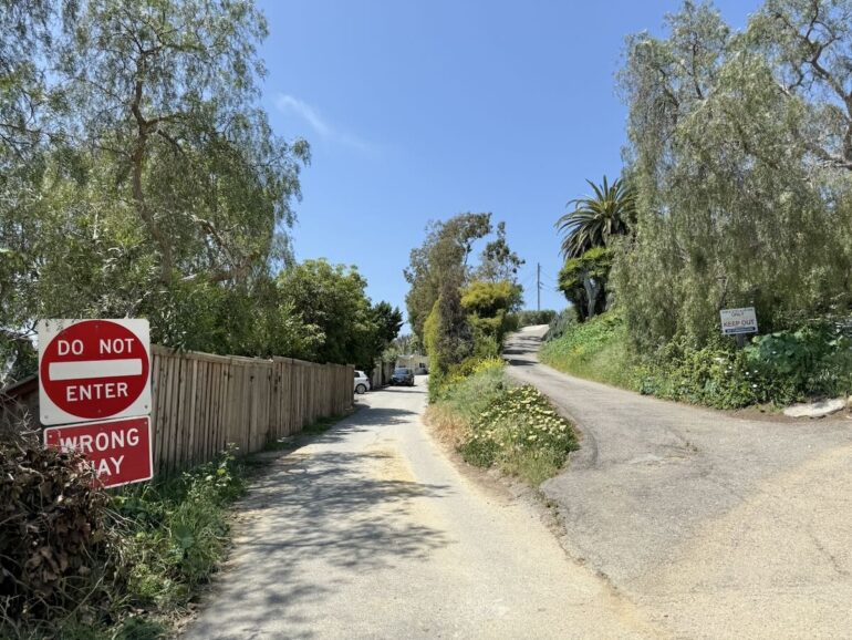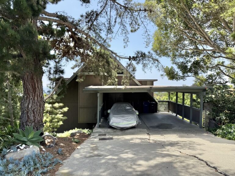 At 2211 Lillie Avenue, on the market for $3.2 million, the parking area is above the house, with an amazing view. And there’s an avocado tree right at the street that must tempt the neighbors. The owner needs one of those “Avocado theft is a crime” signs—as do I, and if you have an extra one, I’ll pay good money for it.