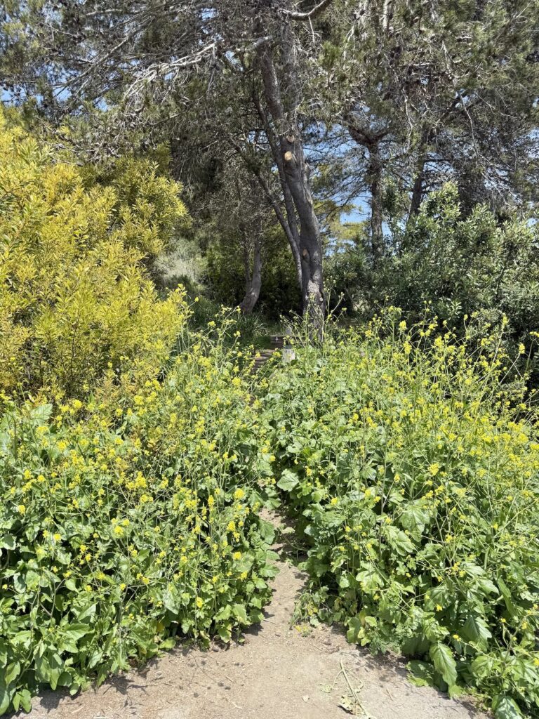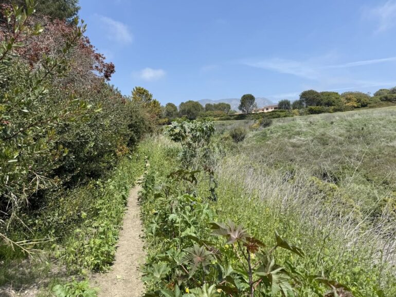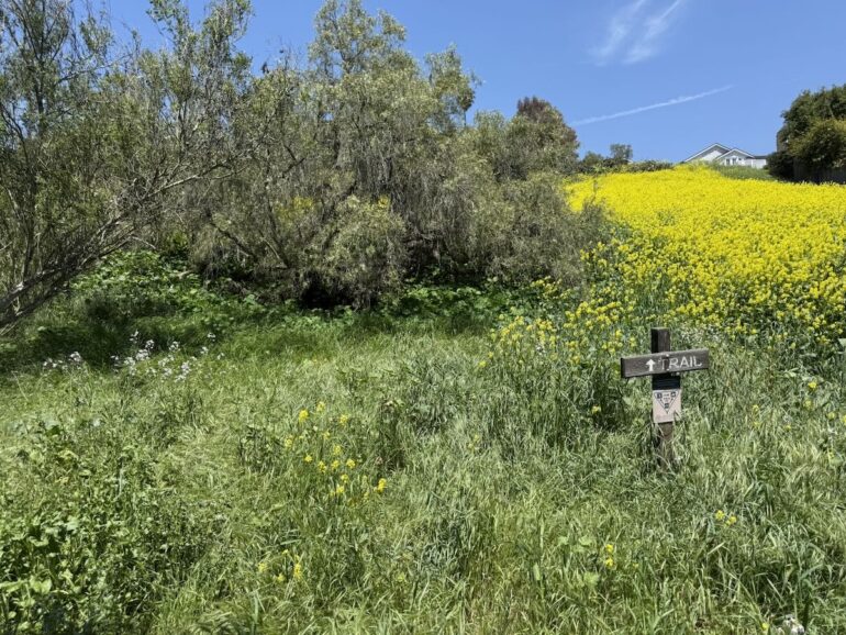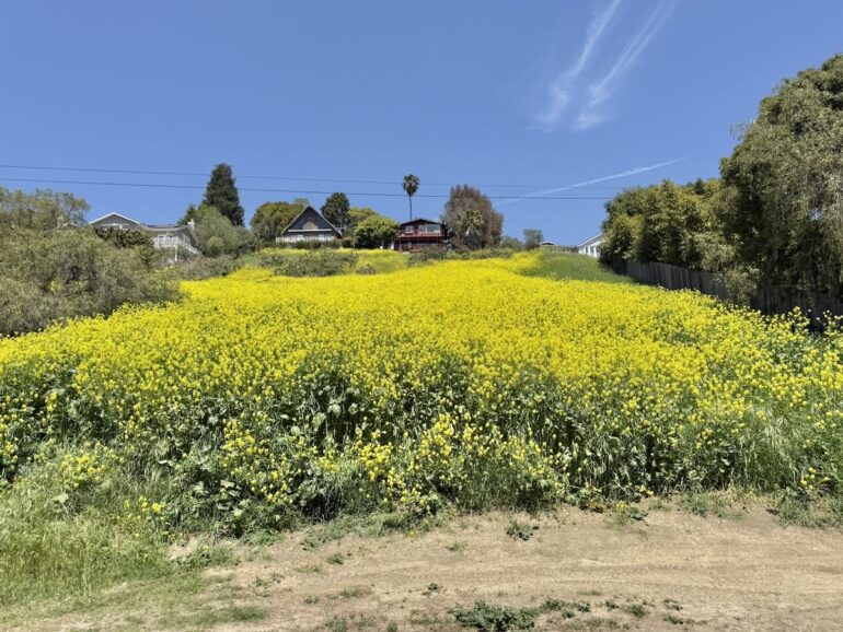 The mustard was in bloom, to spectacular effect. Another Montecito Trails Foundation trail runs from Banner Avenue to Ortega Ridge Road, at least according to the sign and the MTF’s map—but the trail is grown over and I was not about to risk a snakebite.