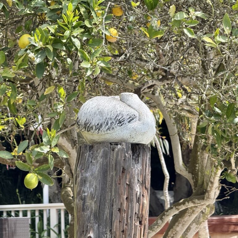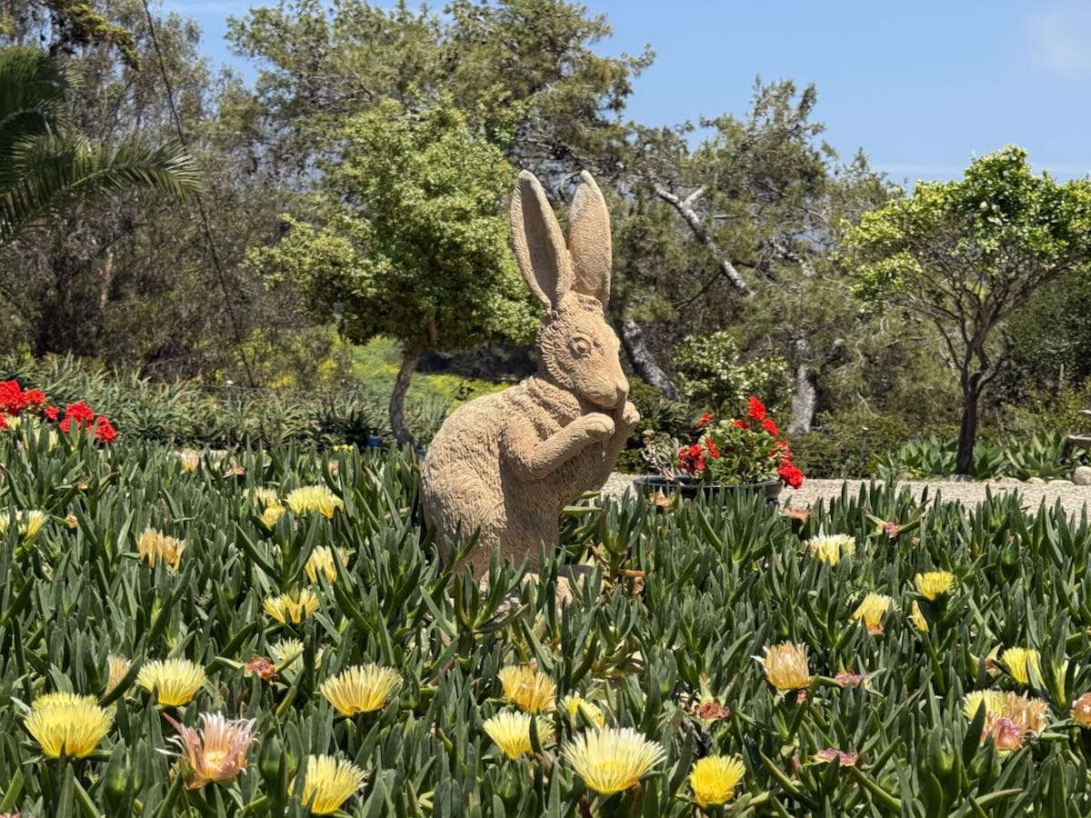 Nearby, a larger-than-life rabbit statue towers over the ice plant. I’m not making fun of it, because we have a smaller rabbit statue in our backyard. It came with the house and we never bothered to move or remove it.