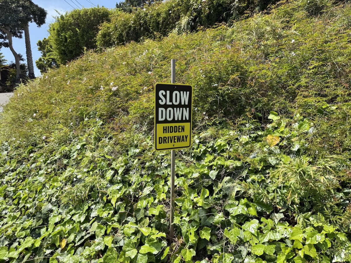 The “hidden driveway” sign reminded me of how signs in New Zealand say “concealed drive,” which struck me as off—it’s not as if someone purposely kept them from view. “Hidden” has the same problem, and yet I can’t think of anything apter.